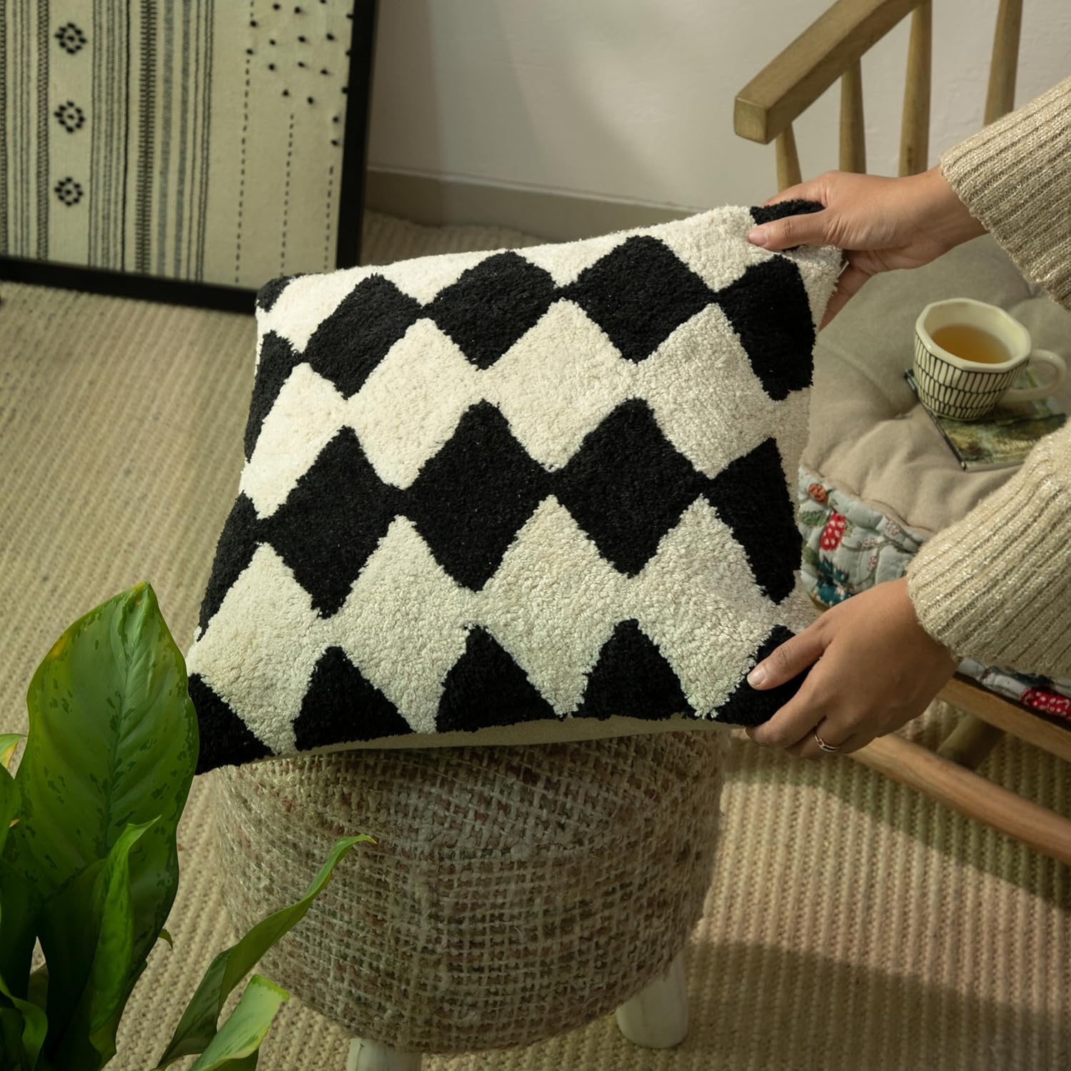 Tufted Boho Pillow Covers 18X18 Inch Throw Pillow Covers Decorative Cushion Cover Exquisitely Crafted with Hand-Finished Tuft Farmhouse Pillow Case for Couch Sofa Bed Living Room Bedroom