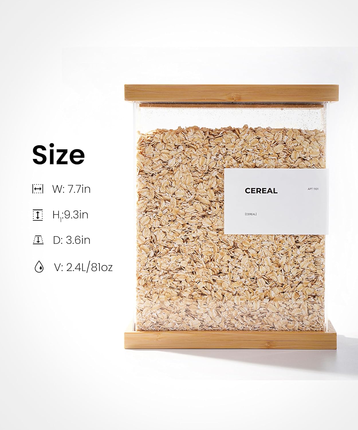 Bamboo Food Dispenser | Kitchen Organizers and Storage | Airtight Pantry Organizers and Storage Container | Cereal, Rice, Flour, Snack Storage (2, Large)