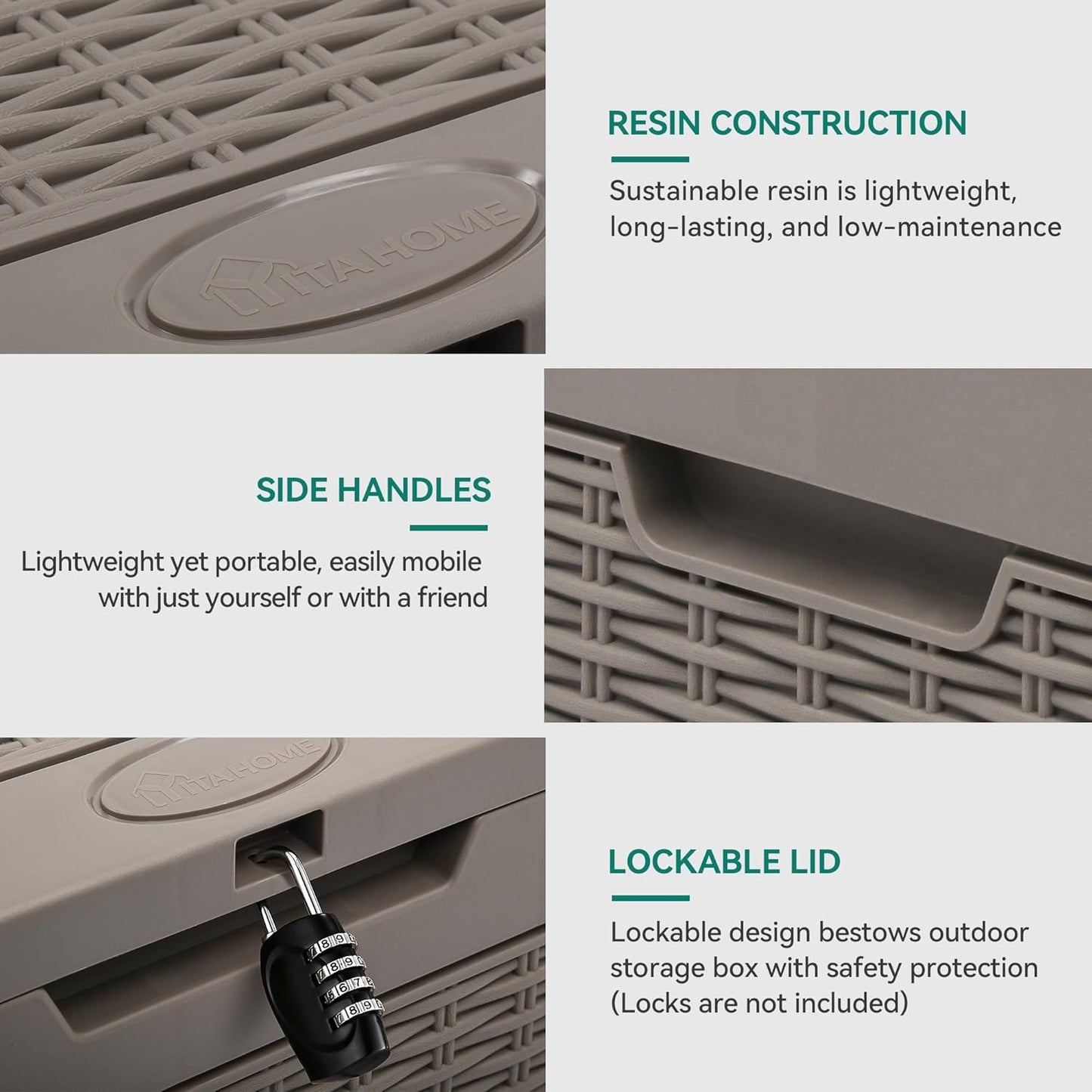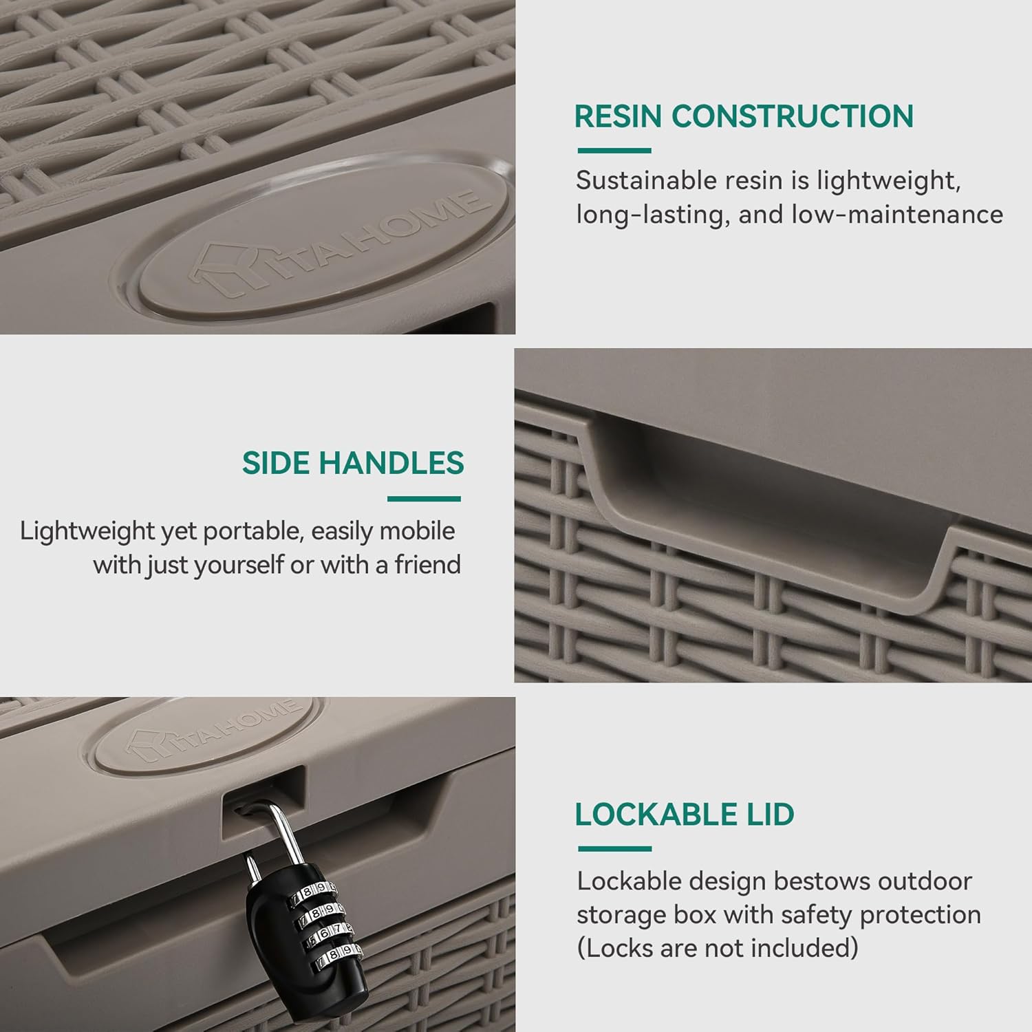 - DESIGNED FOR CONVENIENCE- Our deck box has built-in handles on both sides for convenient lifting and movement; Add a combination lock/padlock (not included) to the top lid to offer extra security