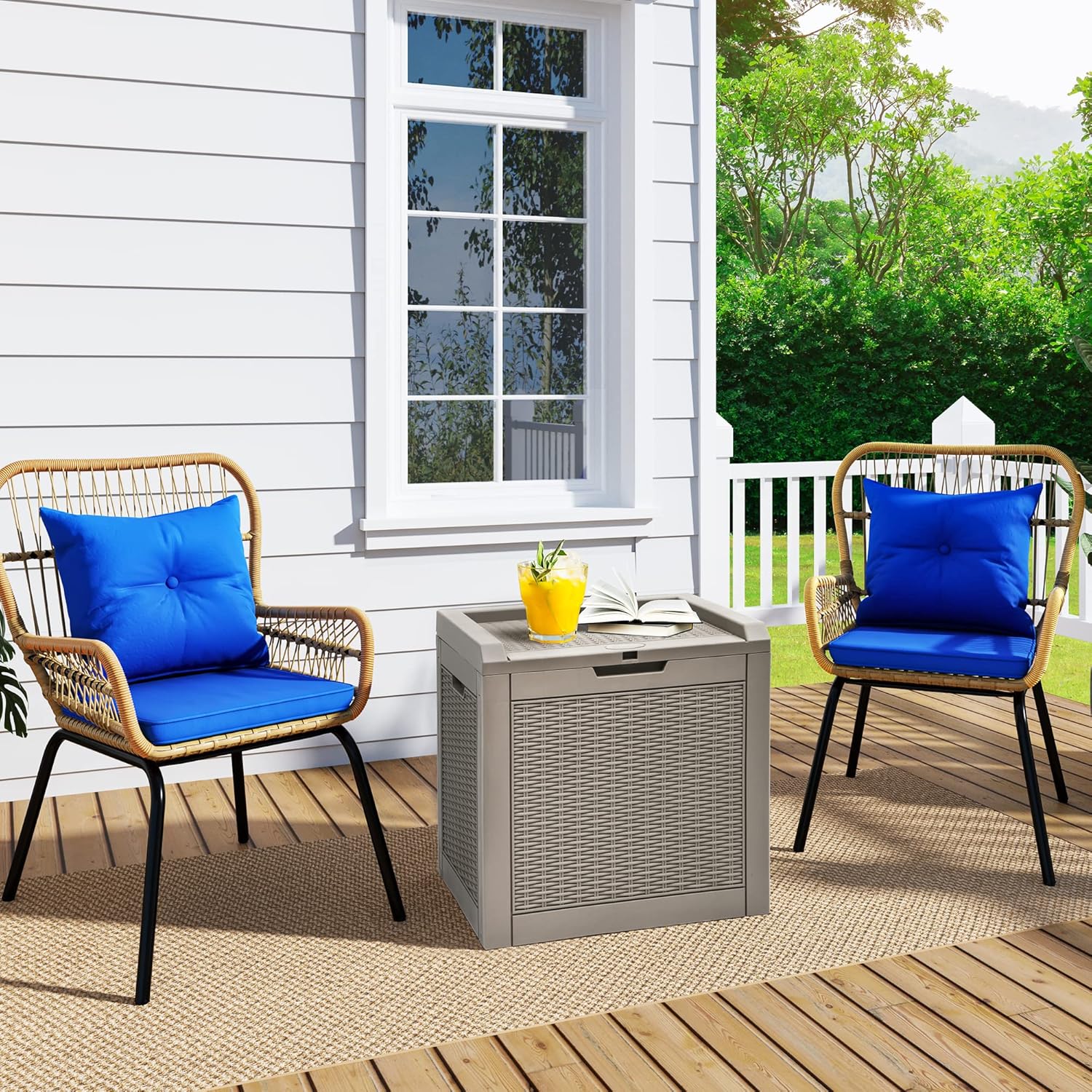- VERSATILE APPLICATION- This deck box has a 32-gallon capacity that provides ample room for daily indoor and outdoor storage of cushions, garden tools, etc.; Can also be used as a side table, patio seating, storage ottoman, or footstool