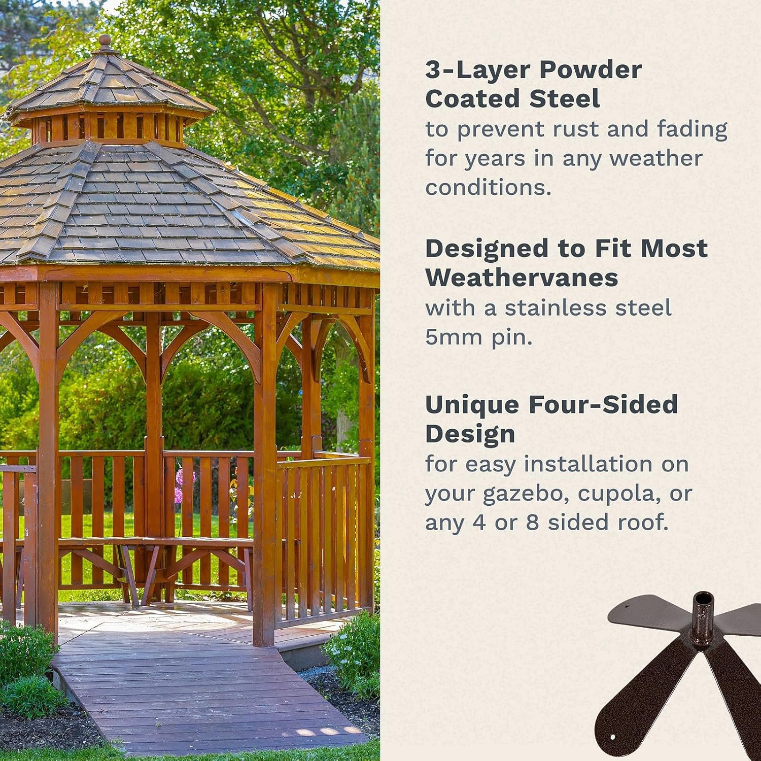 - High-Quality & Built to Last – Built with sturdy, 14-gauge steel (25% thicker than 16-gauge!) this large weathervane is designed with powder coating to withstand harsh weather conditions and prevent rust and fading in every environment. From your yard to your deck to your rooftop, EZ Vane weathervanes, poles, and components are made to withstand outdoor elements.