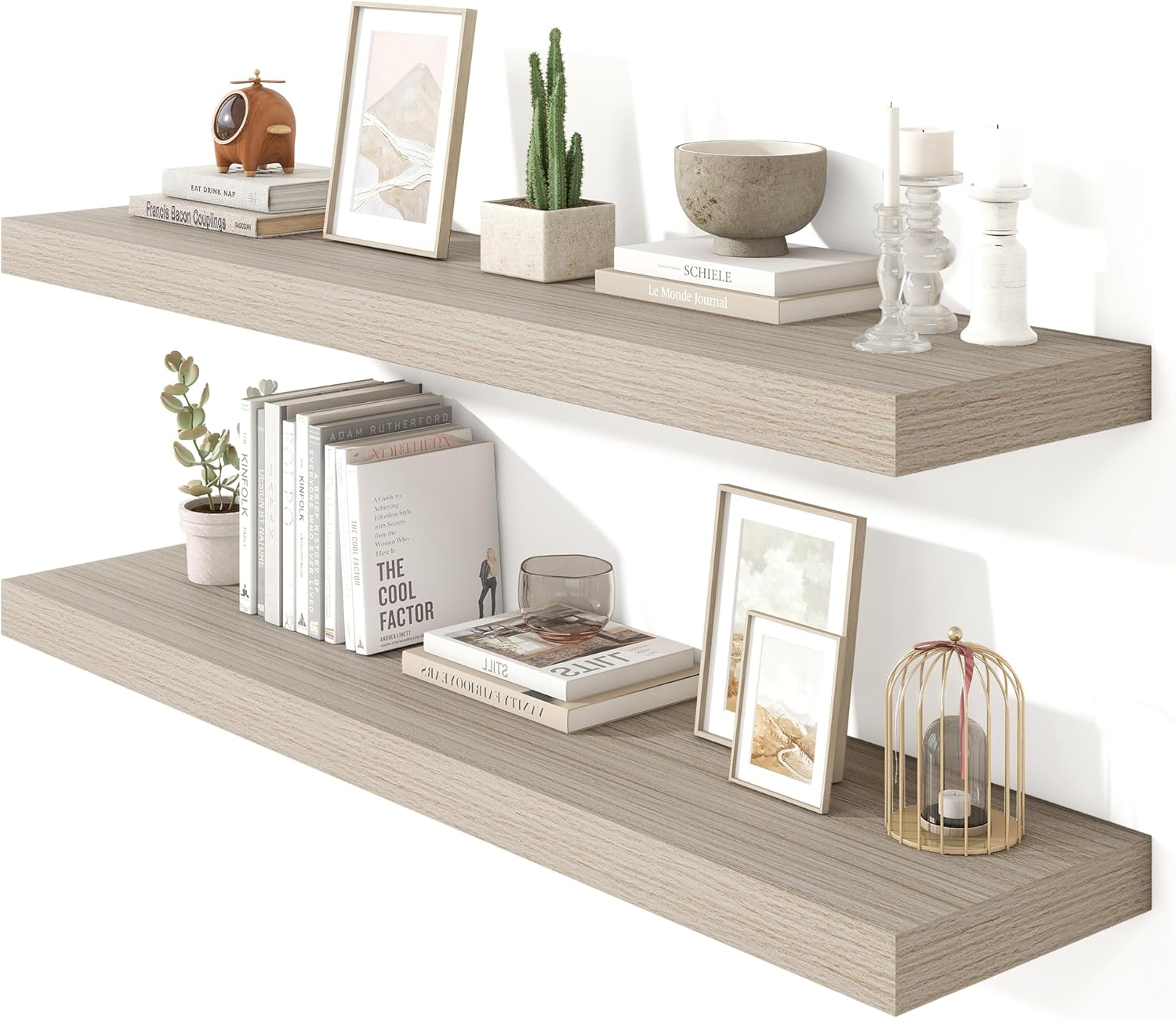 Heimlove 48" Floating Shelves for Wall,10 Grey Deep Rustic Wood Display & Storage Wall Shelves with Heavy Duty Brackets for Bathroom,Bedroom,Kitchen,Living Room,Office,Set of 2