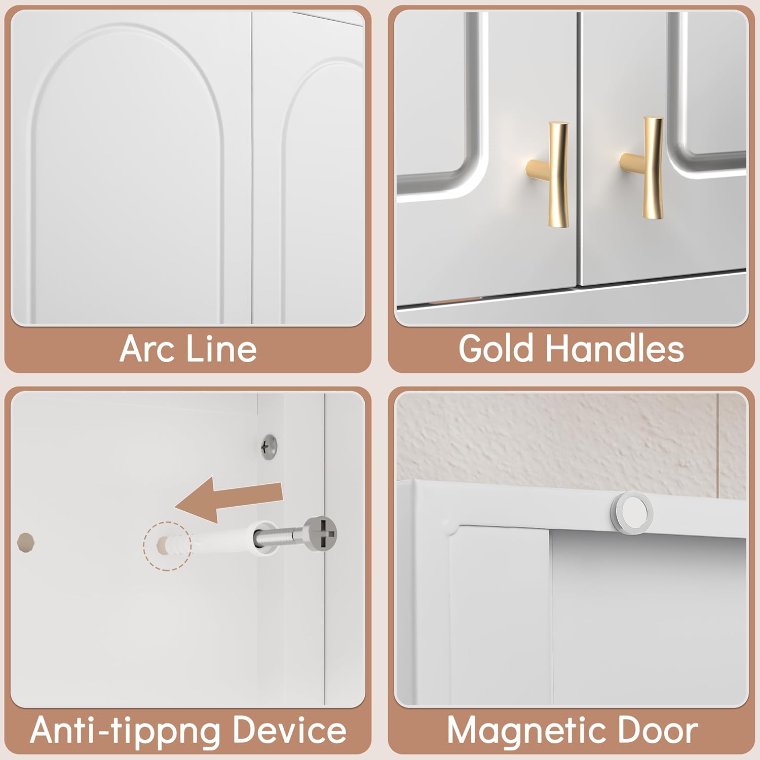 - STYLISH APPEARANCE: Simple white lines make the white storage cabinet more elegant and beautiful, and complement various decorative styles. Whether your home is modern or vintage, this white cabinet will fit together seamlessly