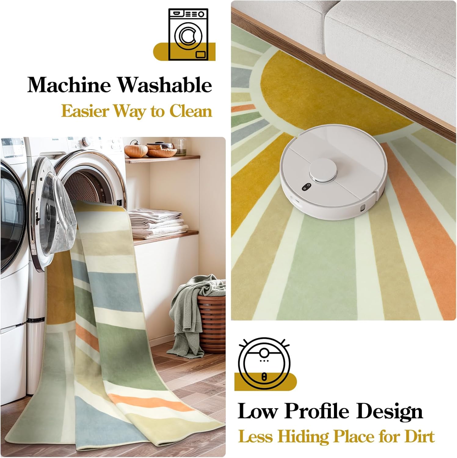 STARUIA Boho Machine Washable 6x9 Area Rugs for Living Room, Soft Non-Slip Large Sun Rainbow Nursery Kids Rug for Bedroom, Colorful Throw Rug Carpet for Classroom Office Dining Room(Monet,6'x9')