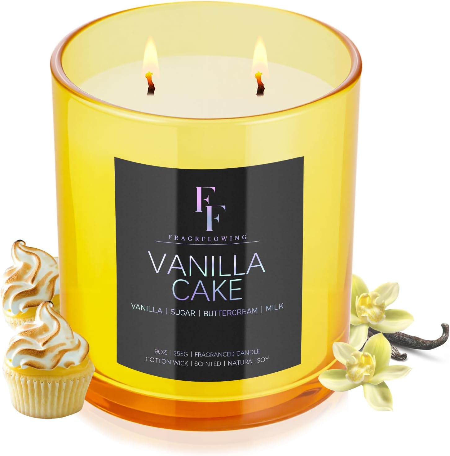 Vanilla Cake Scented Candle, 2-Wick Luxury Soy Wax Candle, 9 oz Aromatherapy Candle Home Fragrance Candles Gift