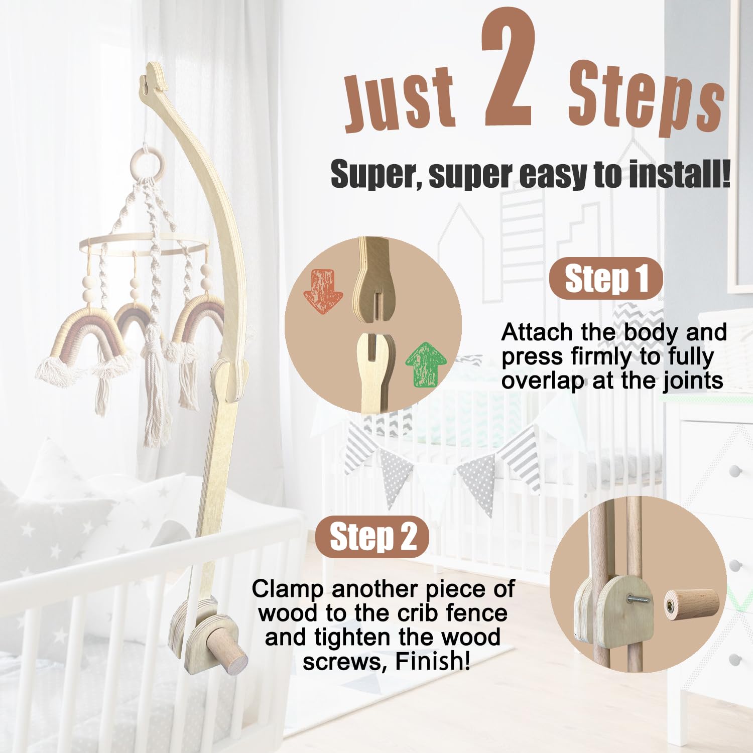 Crib Mobile Wooden Arm, Suitable for All Cribs 100% Natural Larch Hanger Nusery Decor Baby Room Safe Holder(Mobile is not Included (Bird Original Color)