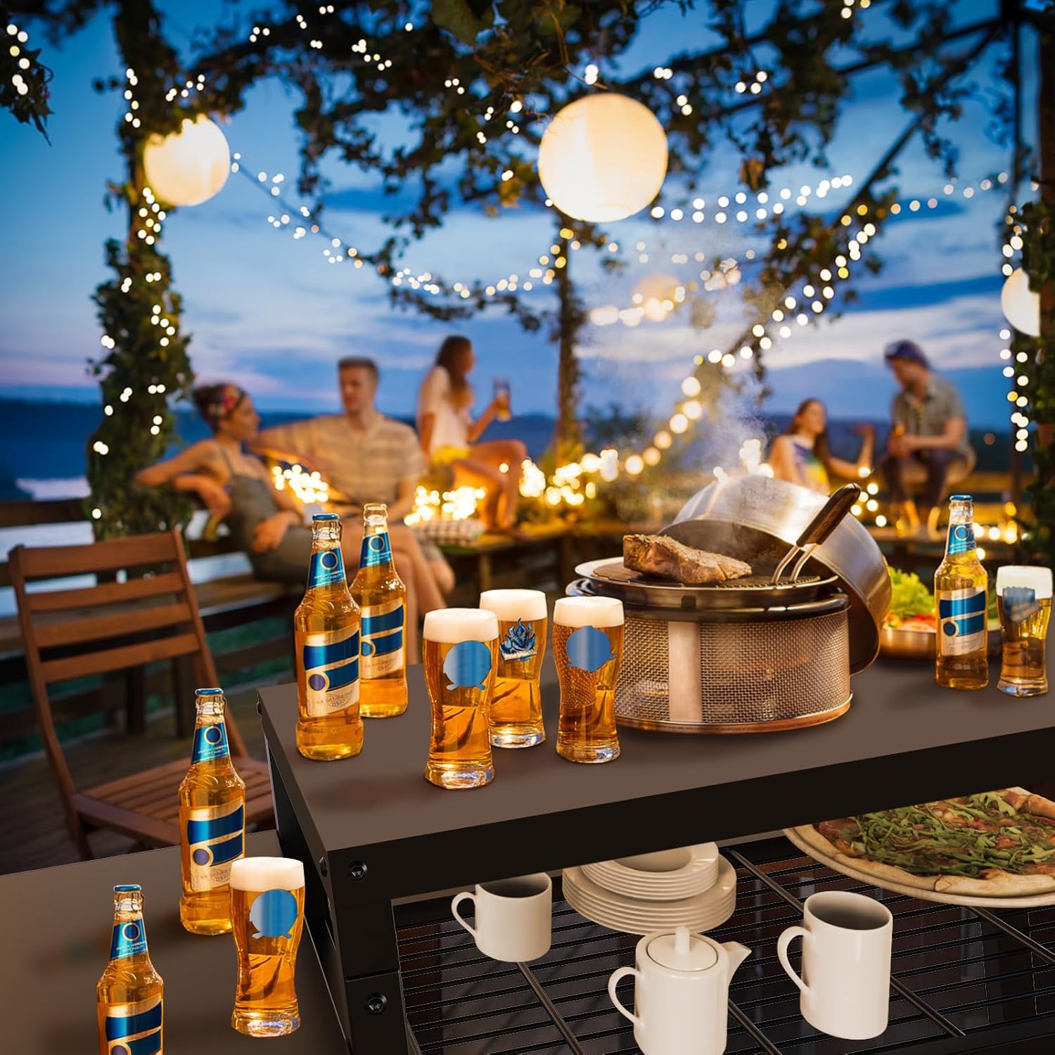 - Heavy Duty outdoor grill cart: This grill table is crafted from premium metal, renowned for its durability and sturdiness, making it an ideal choice for outdoor use. It features a special black powder-coated finish that not only enhances the aesthetic appeal of your pizza oven table but also provides excellent rust resistance, capable of withstanding various harsh weather conditions