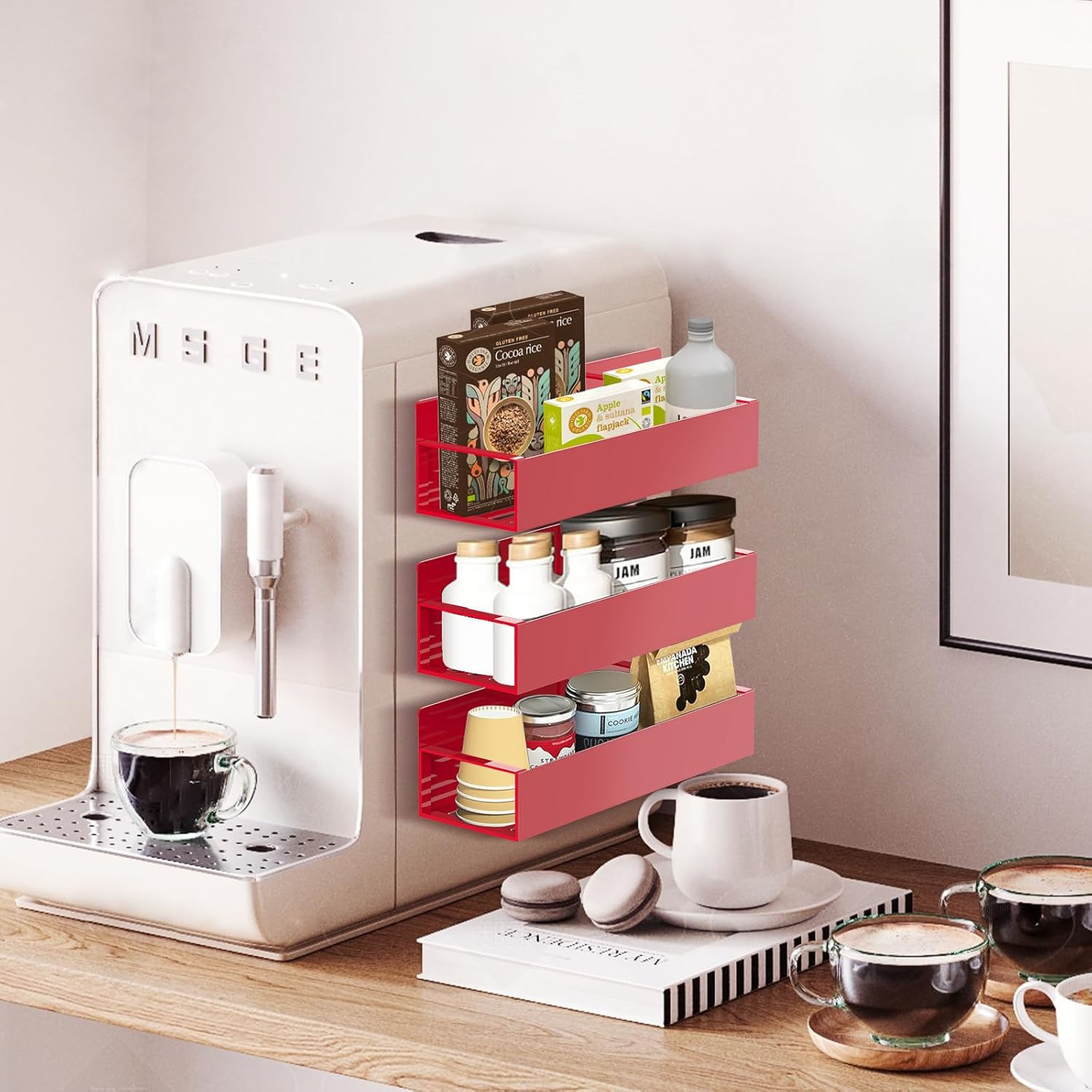 Magnetic Spice Rack Organizer for Fridge Seasoning Organizer for Kitchen Storage With Screw Magnetic Shelf for Oven, RV,Garage,Bathroom (Red, 4pack)