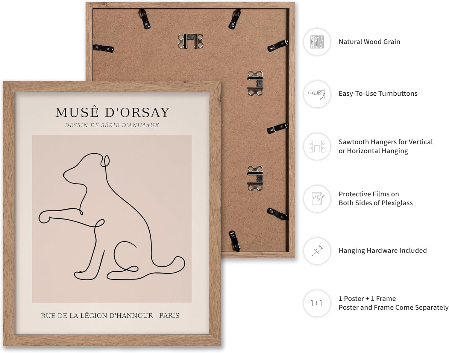 Poster Master Vintage Poster - Retro One Line Dog Drawing Print - Dog Art - Minimal Gift for Men, Women, Animal Lover - Abstract Wall Decor for Home, Office, Bedroom, 11x14 Beige Framed