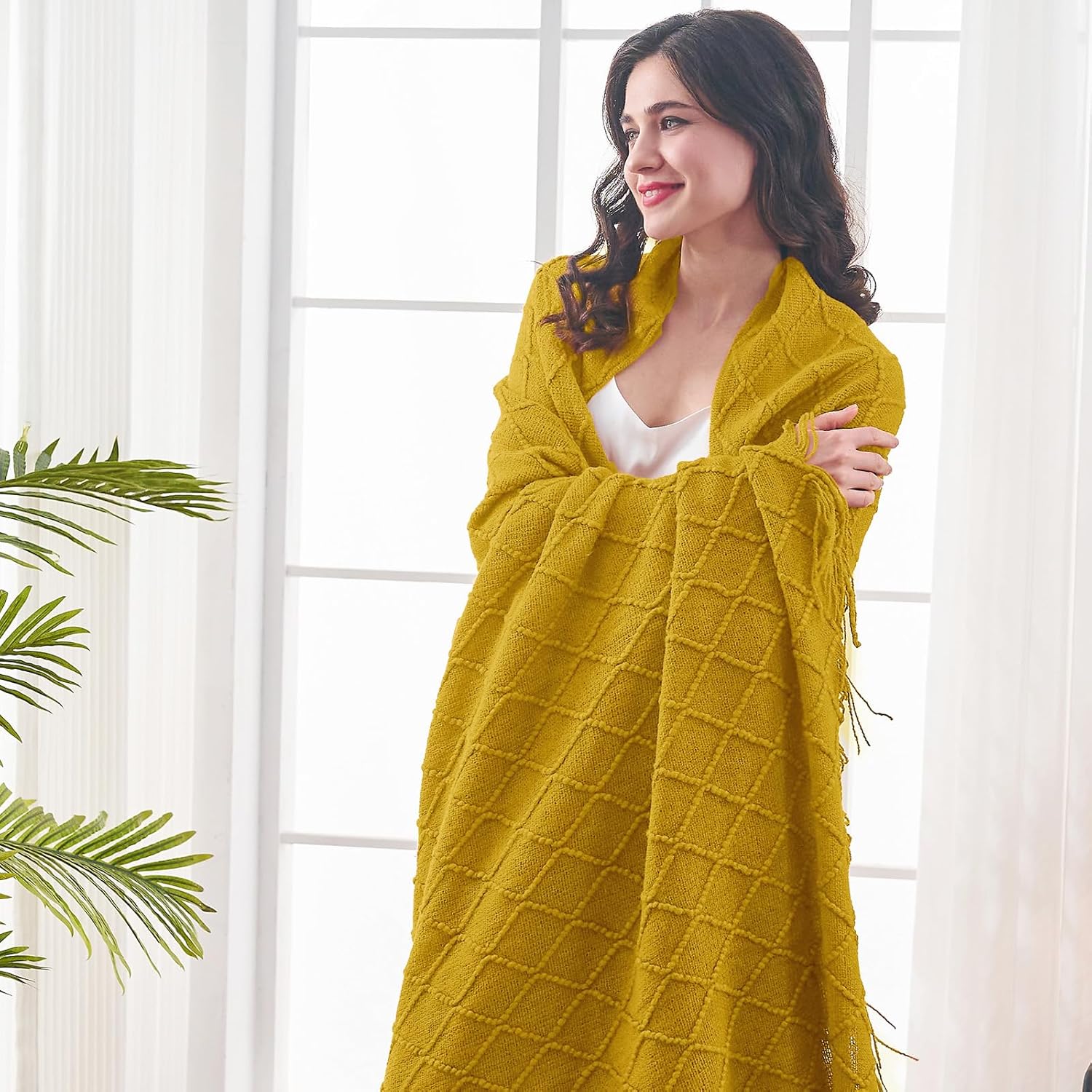 - 【GIFT IDEAS】: Special knitted diamond patterns add a unique accent to your room and people draping it as a shawl. Very suitable for tasteful homeowners. Throw blanket for women, classic but not too tacky as a housewarming gift. Tips: Due to different lighting, display settings, or resolutions, the difference in color happens. We are dying to show the color. To do so, one of the images shows the color difference in different lighting. Hope these instructions would help you to buy a throw.