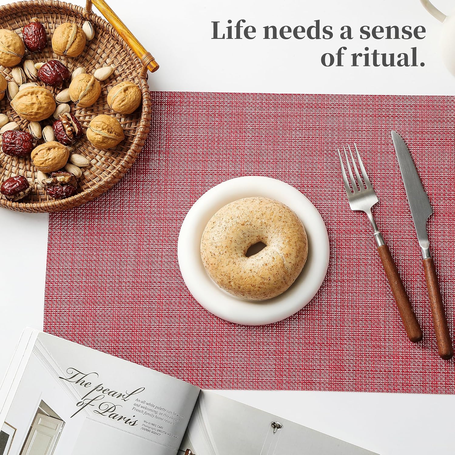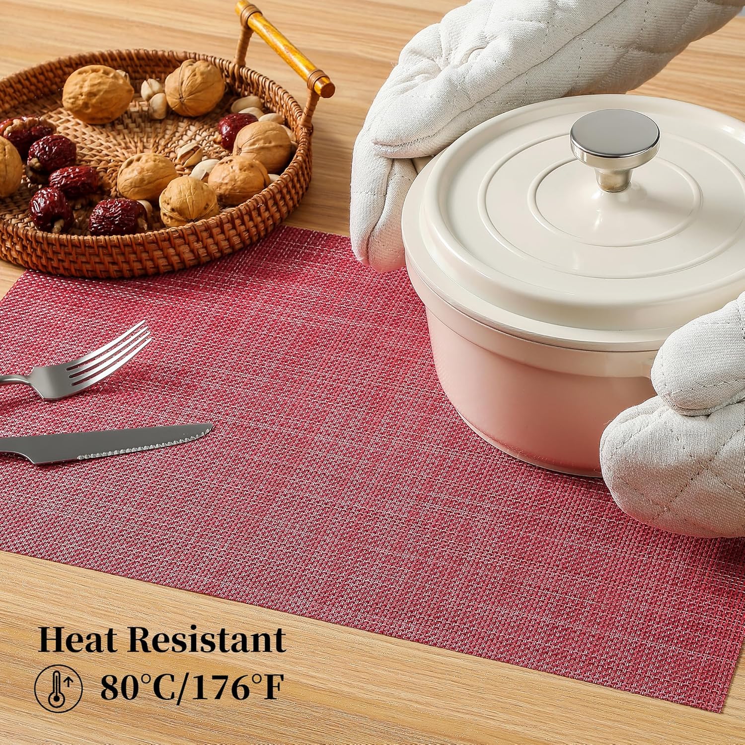 Leetaltree Red Placemats Set of 4 - Heat Resistant Non-Slip Place mats for Dining Table, Washable Durable PVC Vinyl Woven Table Mats(Red, 4)