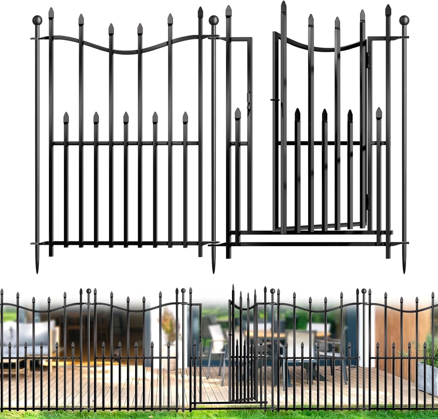 5 Panels No Dig Decorative Garden Fence with Gate, 32in(H) × 11ft(L) Heavy-Duty Rustproof Metal Panels, Outdoor Dog Barrier for Yard & Patio, Landscape, Border| Portable Temporary Fencing