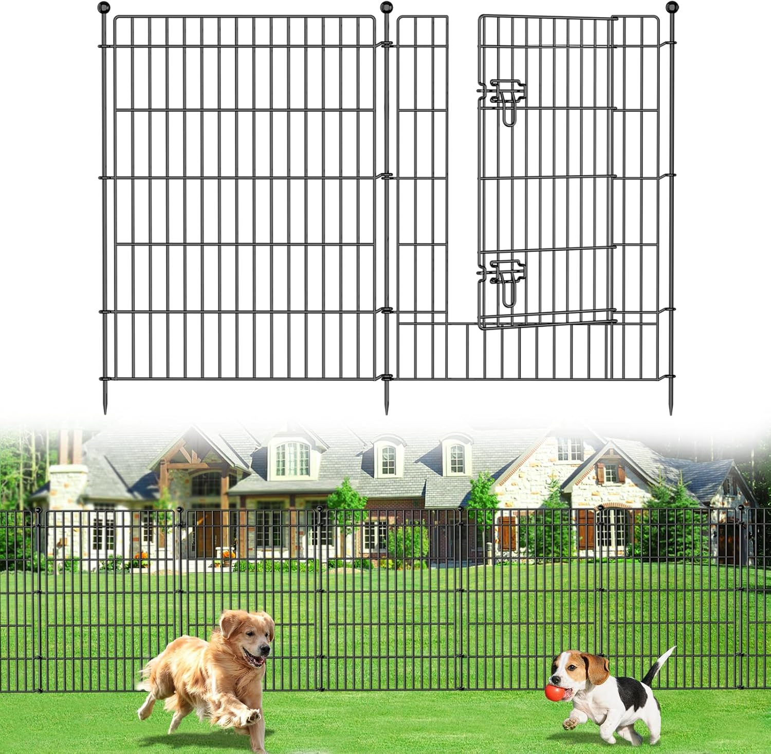 8 Panels No Dig Garden Fence with Gate, 48in(H) × 21ft(L) Decorative Metal Outdoor Dog Fence, Rustproof Pet Fencing for Yard, Patio, Flower Bed -Temporary Fencing| Easy to Install