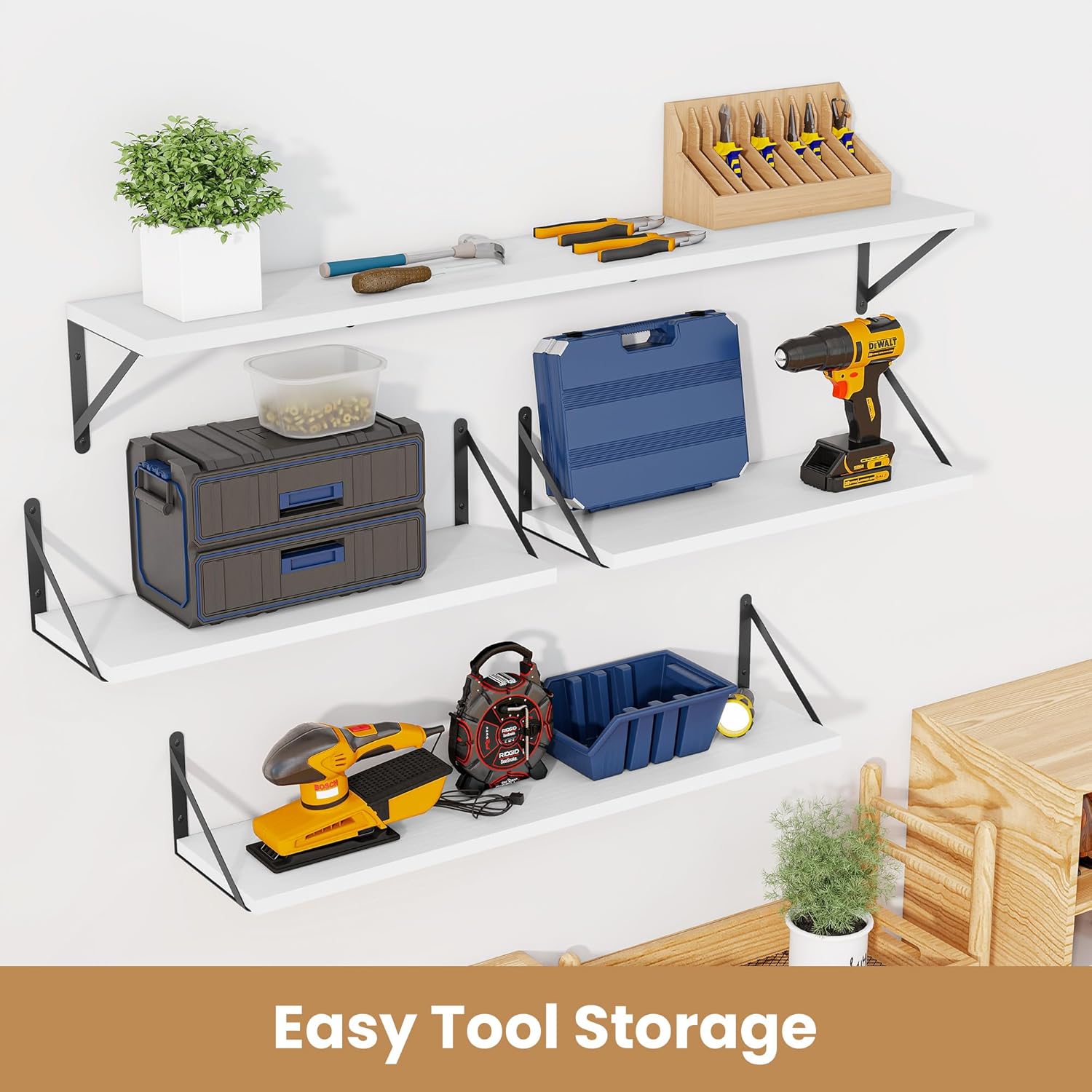 - 【Sturdy and Durable】The wall-mounted shelves are sturdy enough,with two load-bearing metal frame added in the middle,which will not deform and can withstand a weight of 50 pounds. It is very suitable for use as a wide bookshelf,TV stand,for home office,laundry room. Follow the instruction steps,including all necessary hardware,easy to assemble.