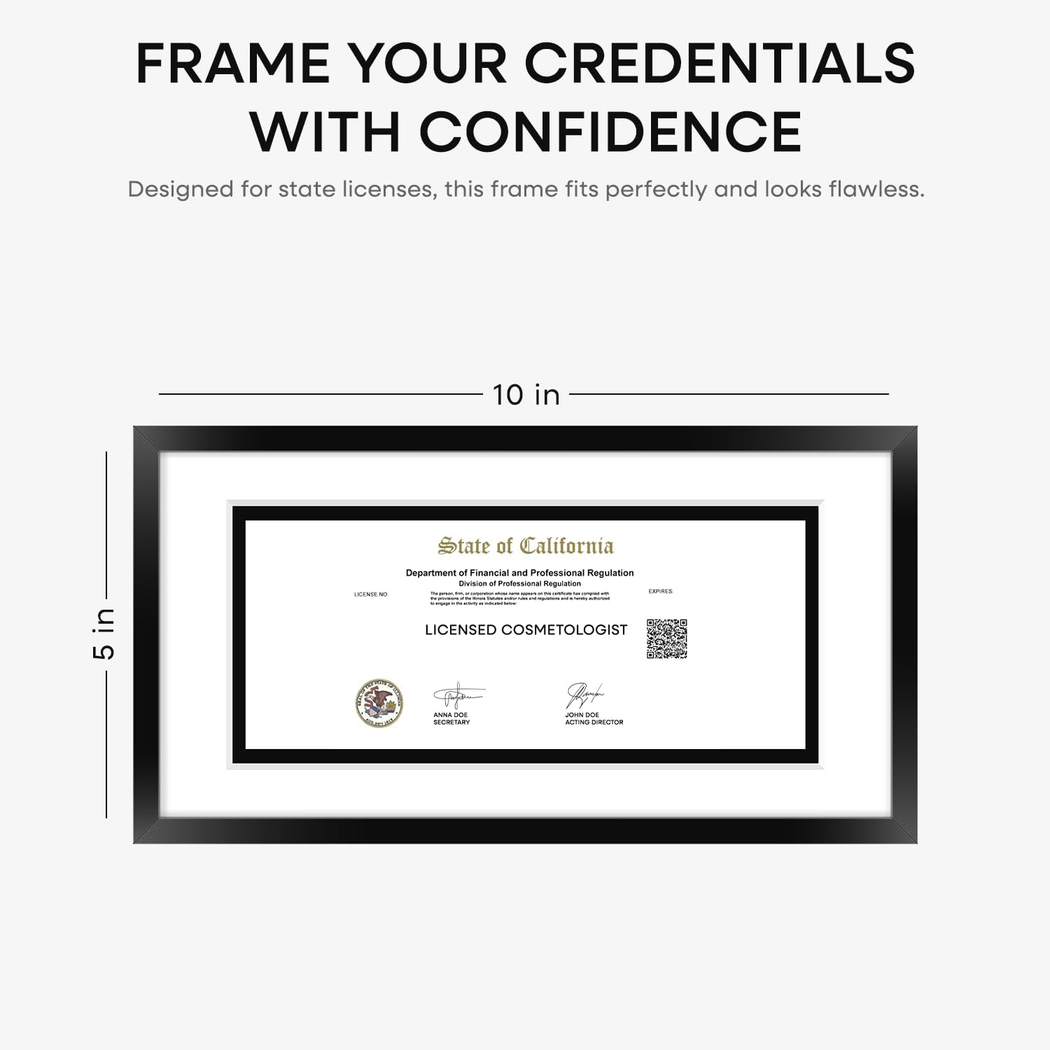 Homeforia 5x10 Business License Frame Black, High End Metal 5 x 10 Document Certificate Frame with Mat 4x9, 5 by 10 Professional License Frames for Wall or Tabletop, Tempered Glass, Wall Kit, Set of 1