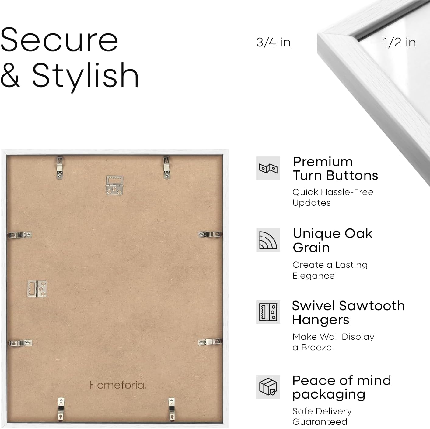 Homeforia 11x18 White Diploma Frame with Photo, High End Oak 11 x 18 Certificate Wood Frame with Mat 8.5x11 Diploma and 5x7 Picture, 18 by 11 Wooden Document Frames, Tempered Glass, Wall Kit, Set of 1