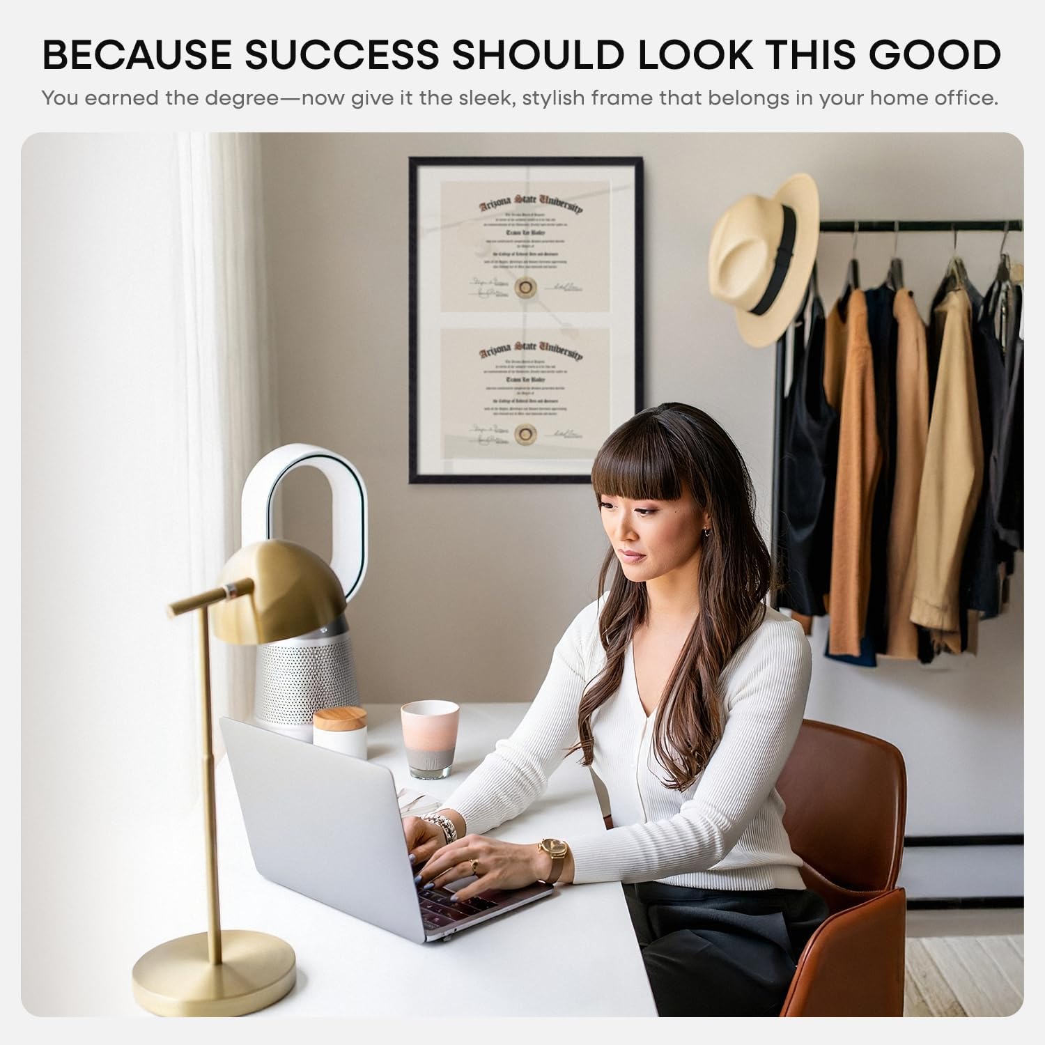 Homeforia 14x20 Double Diploma Frame, High End Oak 14 x 20 Black Wood Certificate Frames with Mat for Two 8.5x11 Diplomas, 20x14 Wooden Dual Award Graduation Frames, Tempered Glass, Wall Kit, Set of 1