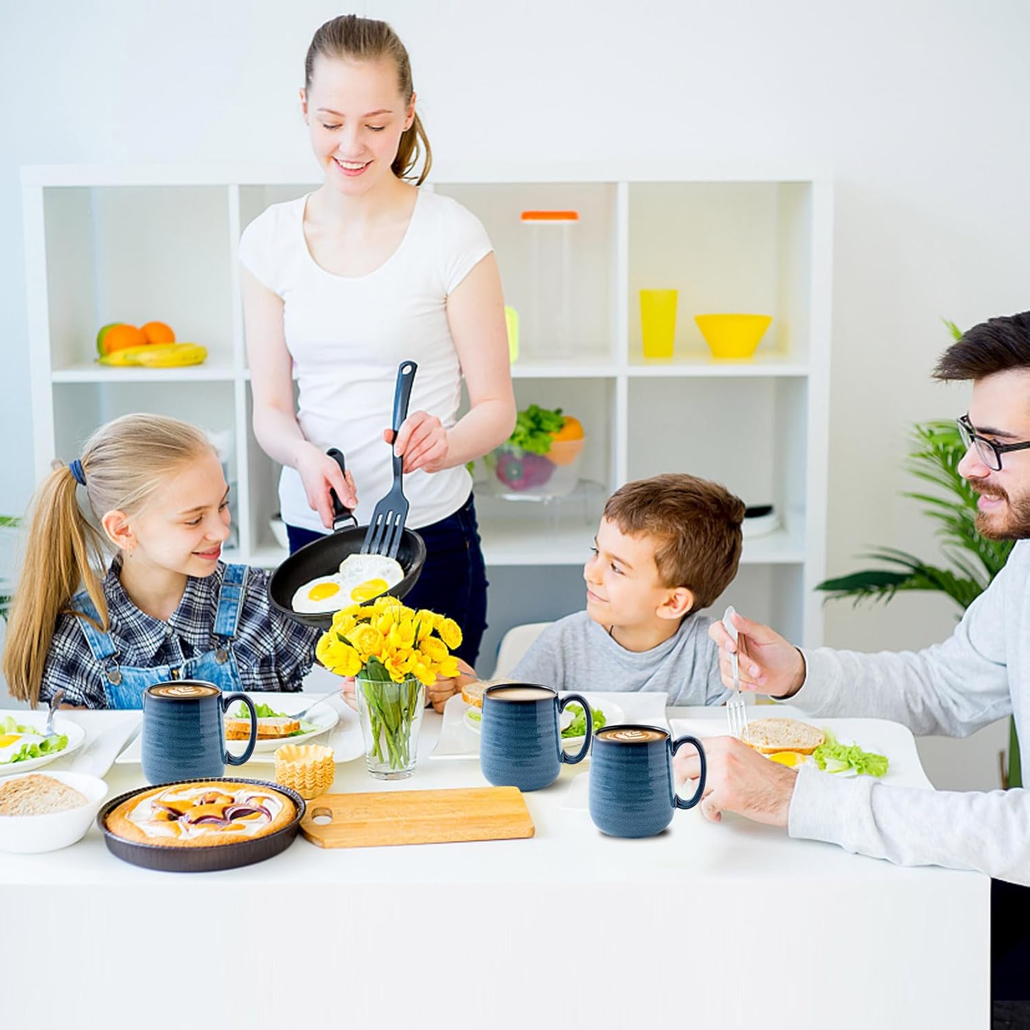 - Functional And Practical: The blue mugs measure 4.7*3.1*4.1inch which is large and deep to hold any of your favorite beverage. With a capacity of 15 oz, these mugs set are perfect size to hold coffee, tea, milk, cocoa, cappuccino and hot chocolate. Suitable for home, office, party, holiday and wedding anniversary