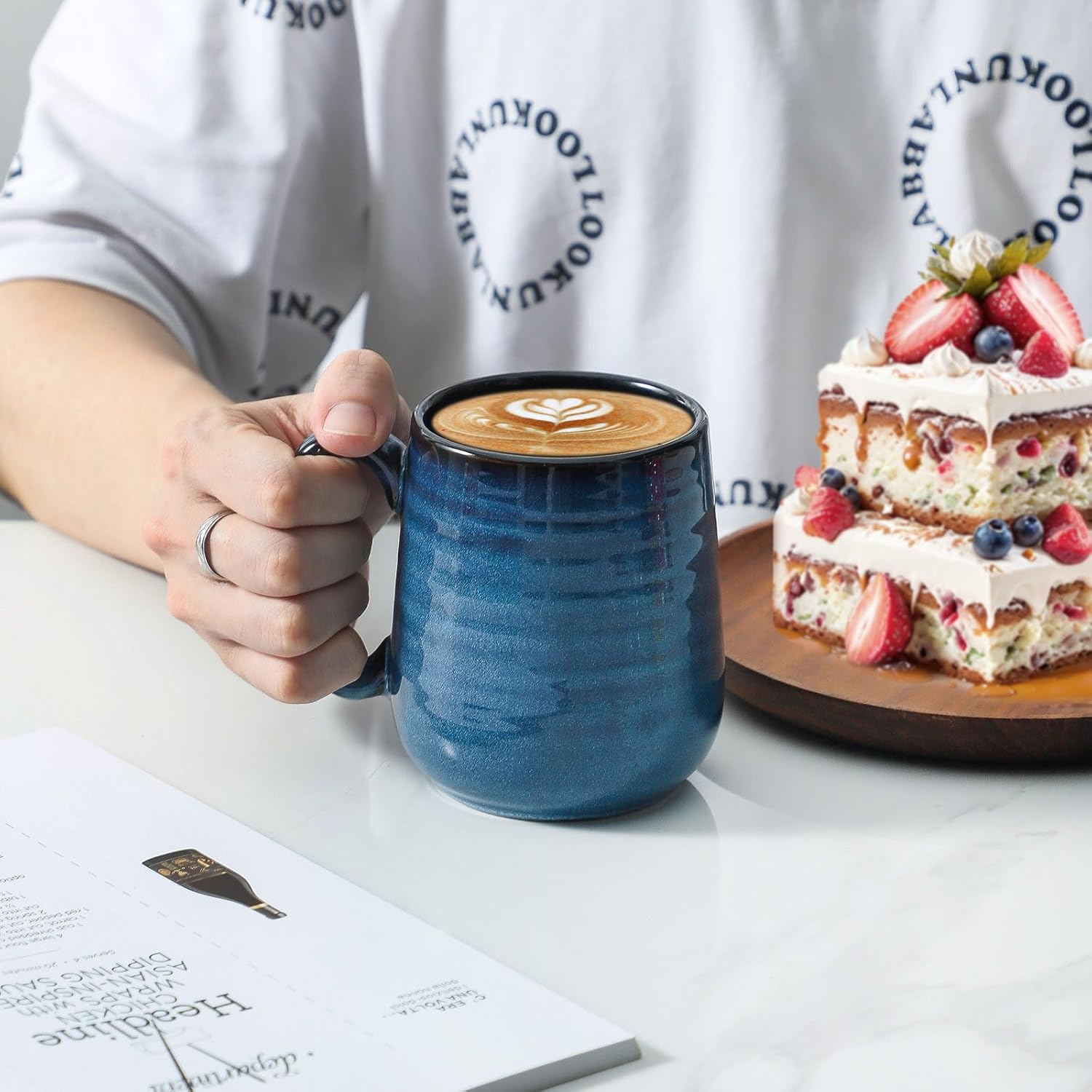 - Exquisite And Vintage Design: Hasense large coffee mugs are feature reactive navy glaze which is a beautiful and classic decor for your home and kitchen. Are you looking for a coffee mug set for daily use? Then our blue coffee mugs with coaster, spoons and gift box will be the right set for you