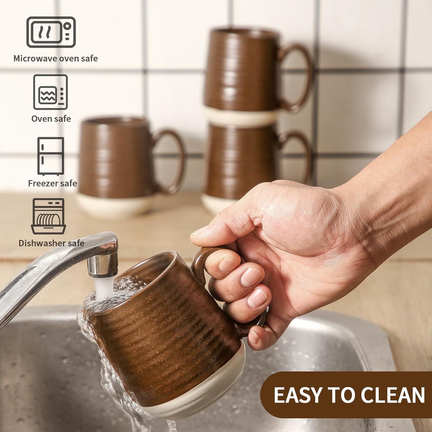 - Food-Grade Porcelain: Our coffee cups are crafted from premium ceramic and finished with healthy glaze, making them chip-resistant, sturdy and reliable. With smooth surface, the large coffee cups set are clean up well in the dishwasher and no need to worry ablut coffee stains