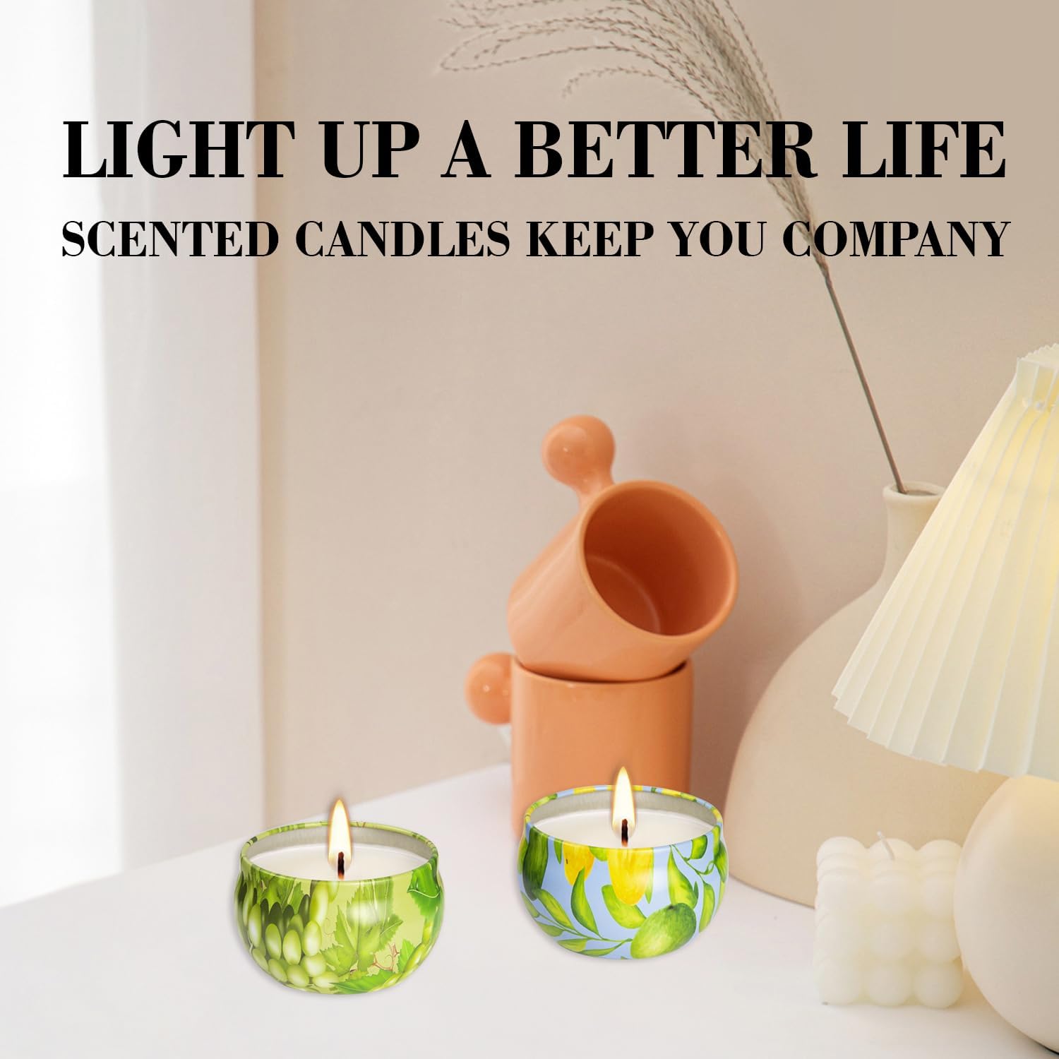 - Durable & Stylish Packaging: Housed in vibrant colorful iron cans, these candles not only provide a burst of aroma but also serve as decorative elements themselves. The sturdy containers ensure protection during storage and transport, and their unique designs add character to any space they occupy post-use as planters or knick-knack holders.