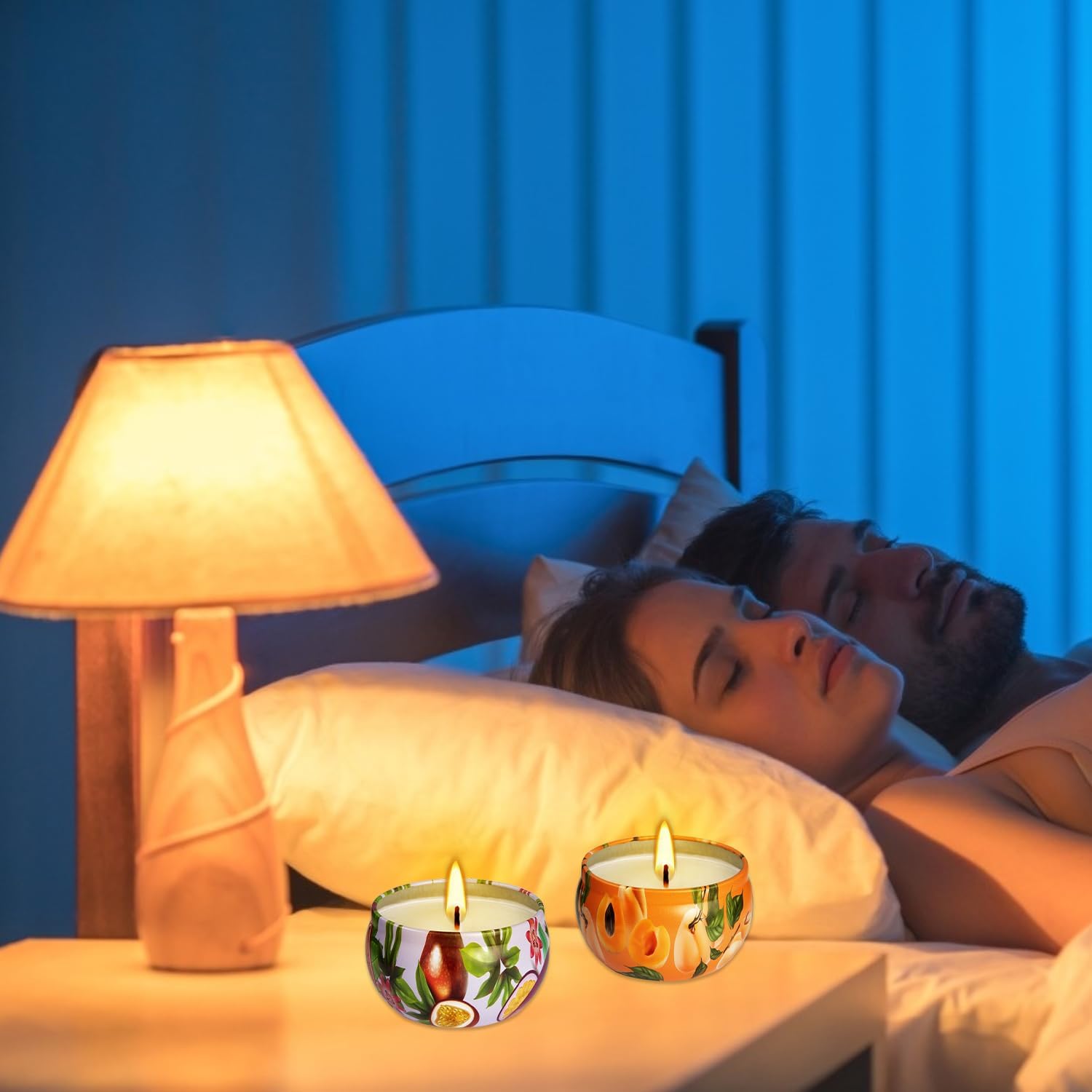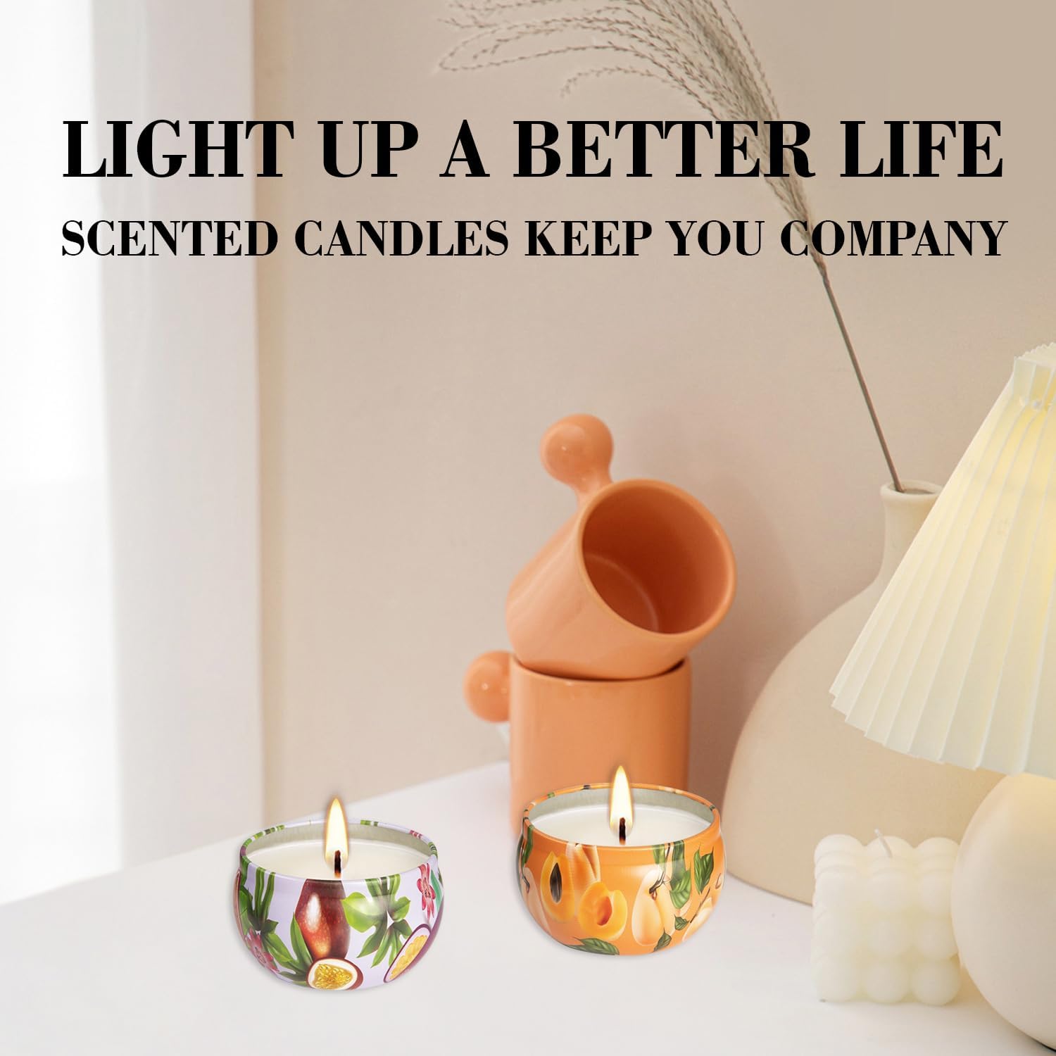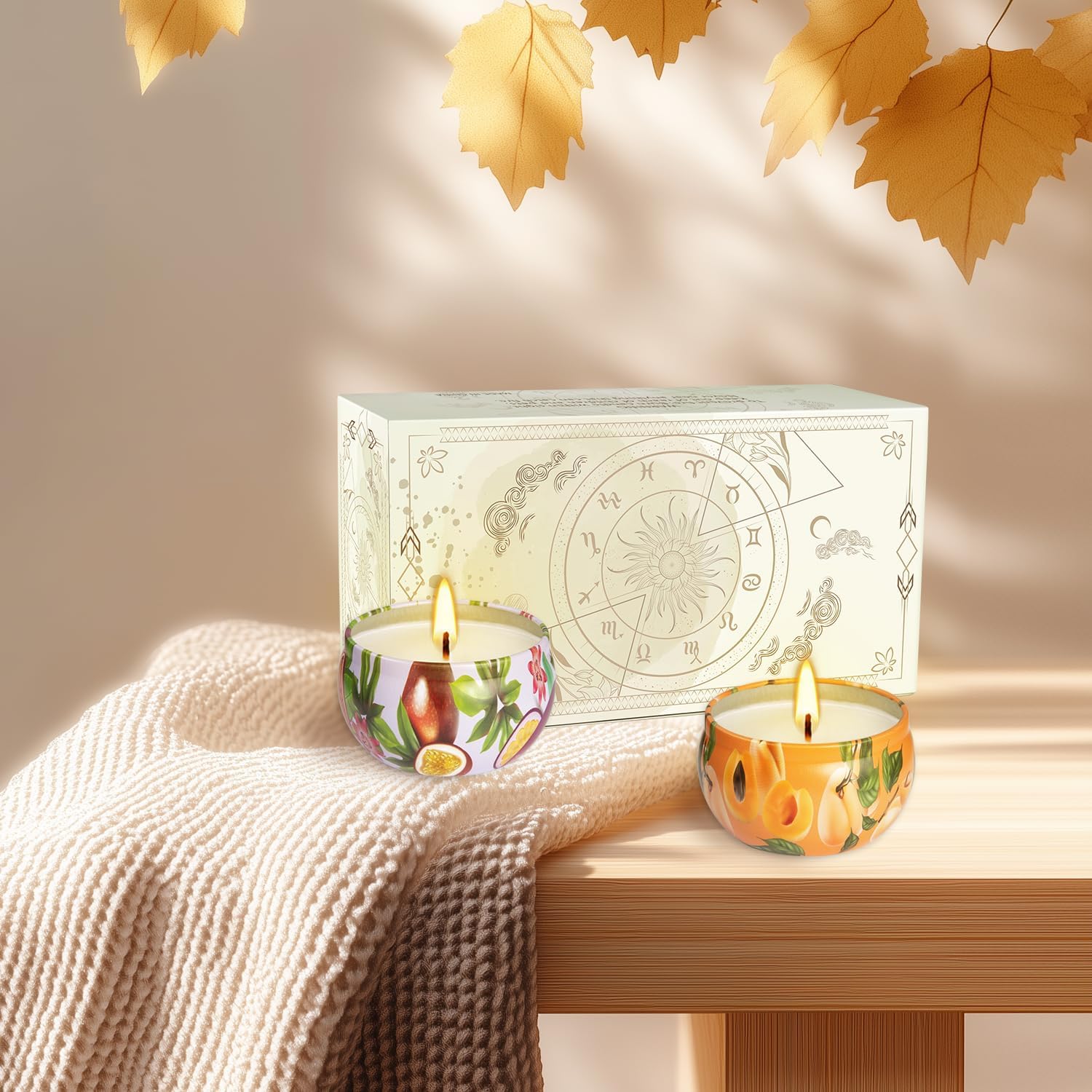 Set of 2 | 2.5-Ounce Scented Jar Candles - Fruit Style - Perfect for Home, Spa, Yoga Studio - Vibrant Colorful Iron Can Jars Candles(Passion Fruit & Apricot Fragrance)