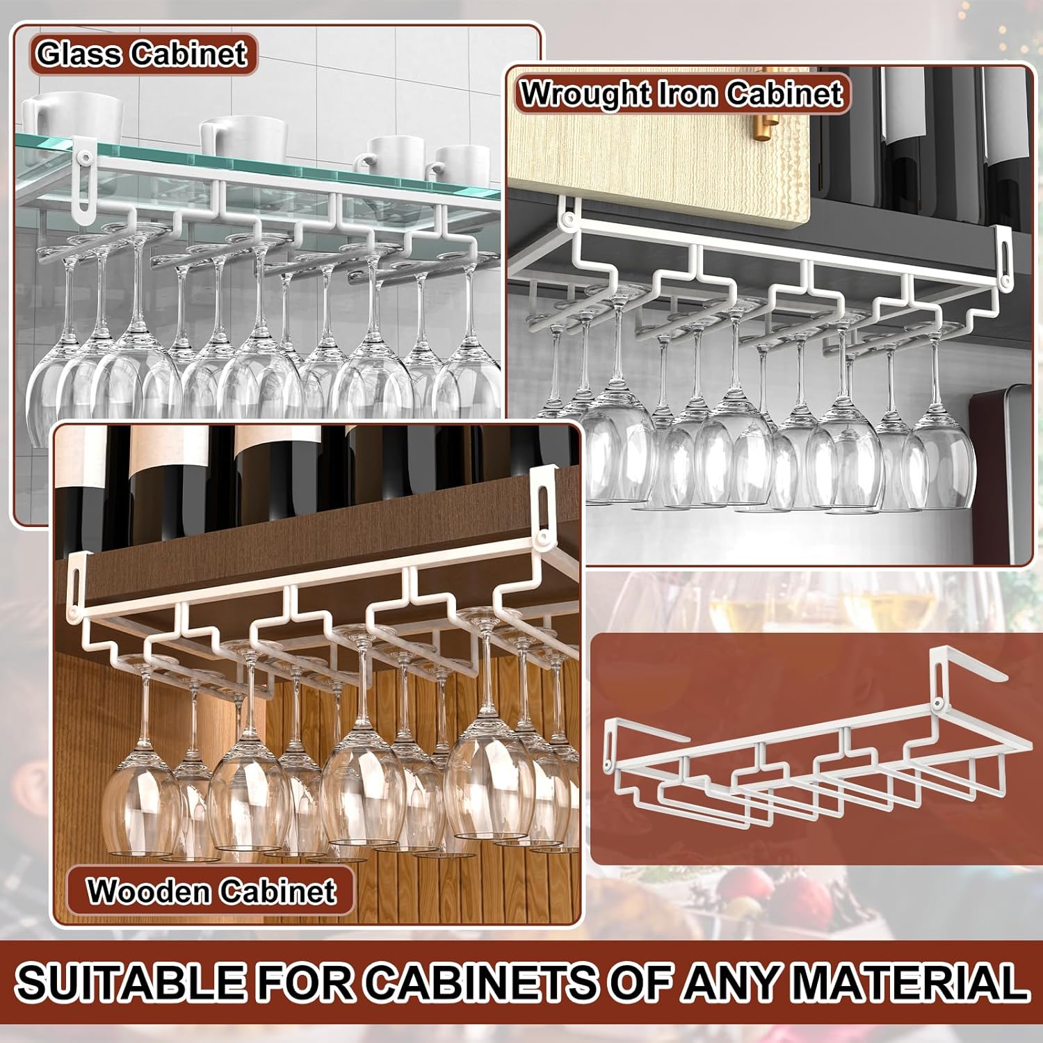 - 【Space Saving】Compact wine glass rack can be hang under any kitchen cabinets, save so space while displaying your glasses! Adds elegance taste to your home or bar's decor, as well as a best gift for wine lovers.