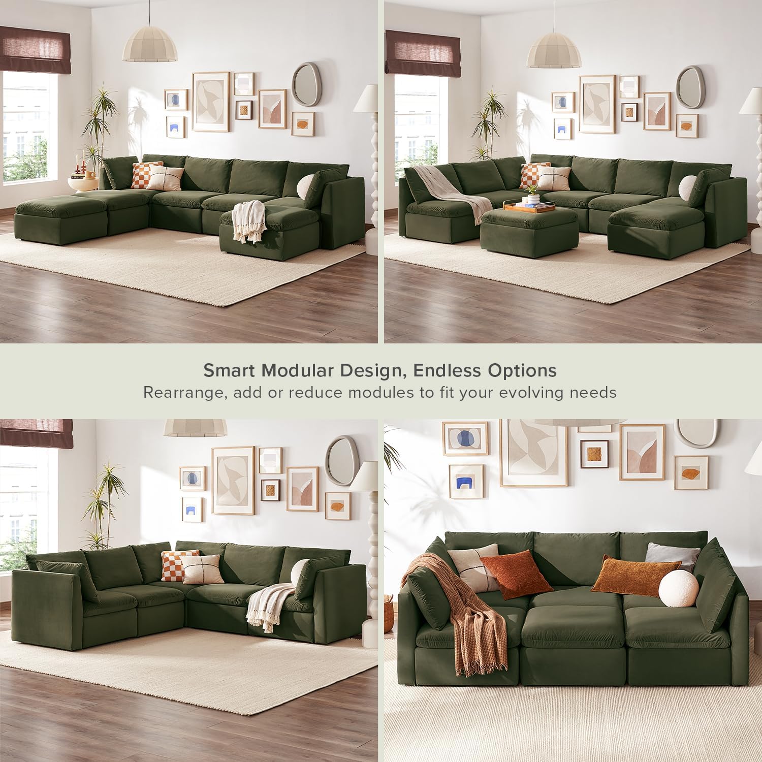 mopio Oversized Modular Sectional Sofa with Fully Removable Covers and Storage, Convertible U, L-Shaped and Sleeper Sectional, Modern Couches with Ottoman Chaise (Olive Green Velvet, 7 Seats, U)