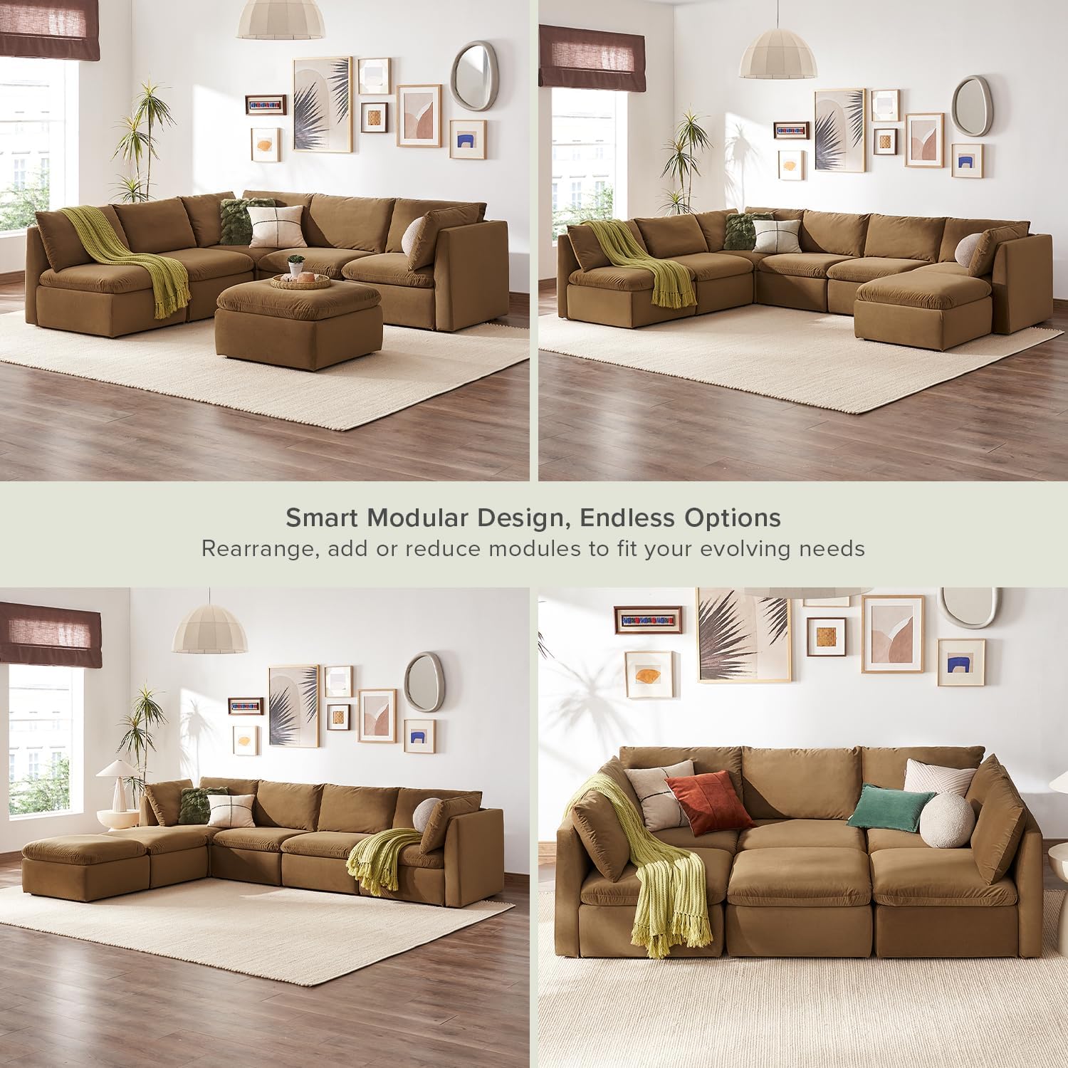 mopio Oversized Modular Sectional Sofa with Fully Removable Covers and Storage, Convertible U & L Shaped Sectionals, Modern Cloud Couch with Ottoman Chaise (Hazelnut Velvet, 6 Seats, L)