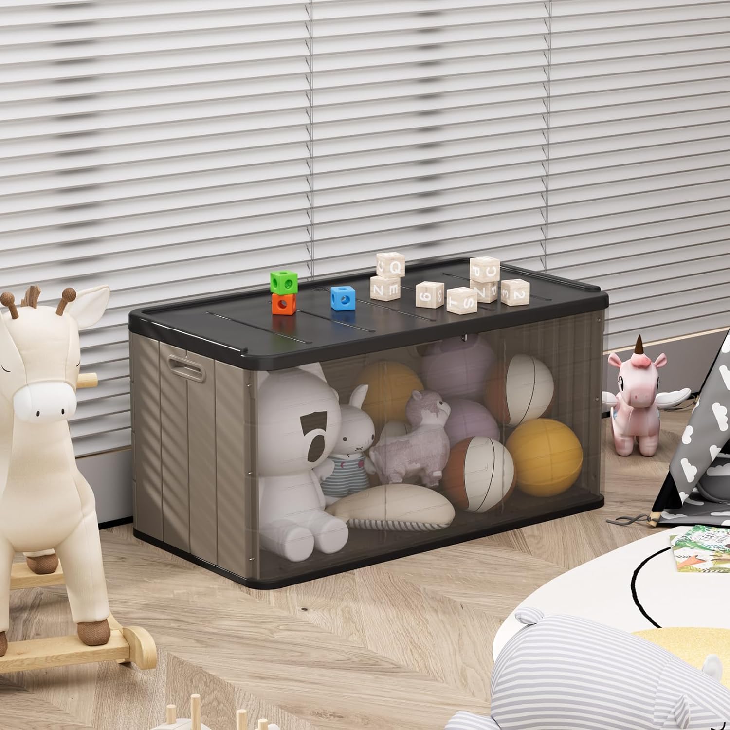 - Spacious Storage: ZZM resin deck box offers a generous 100-gallon capacity, perfect for storing patio cushions, gardening tools, or outdoor accessories.