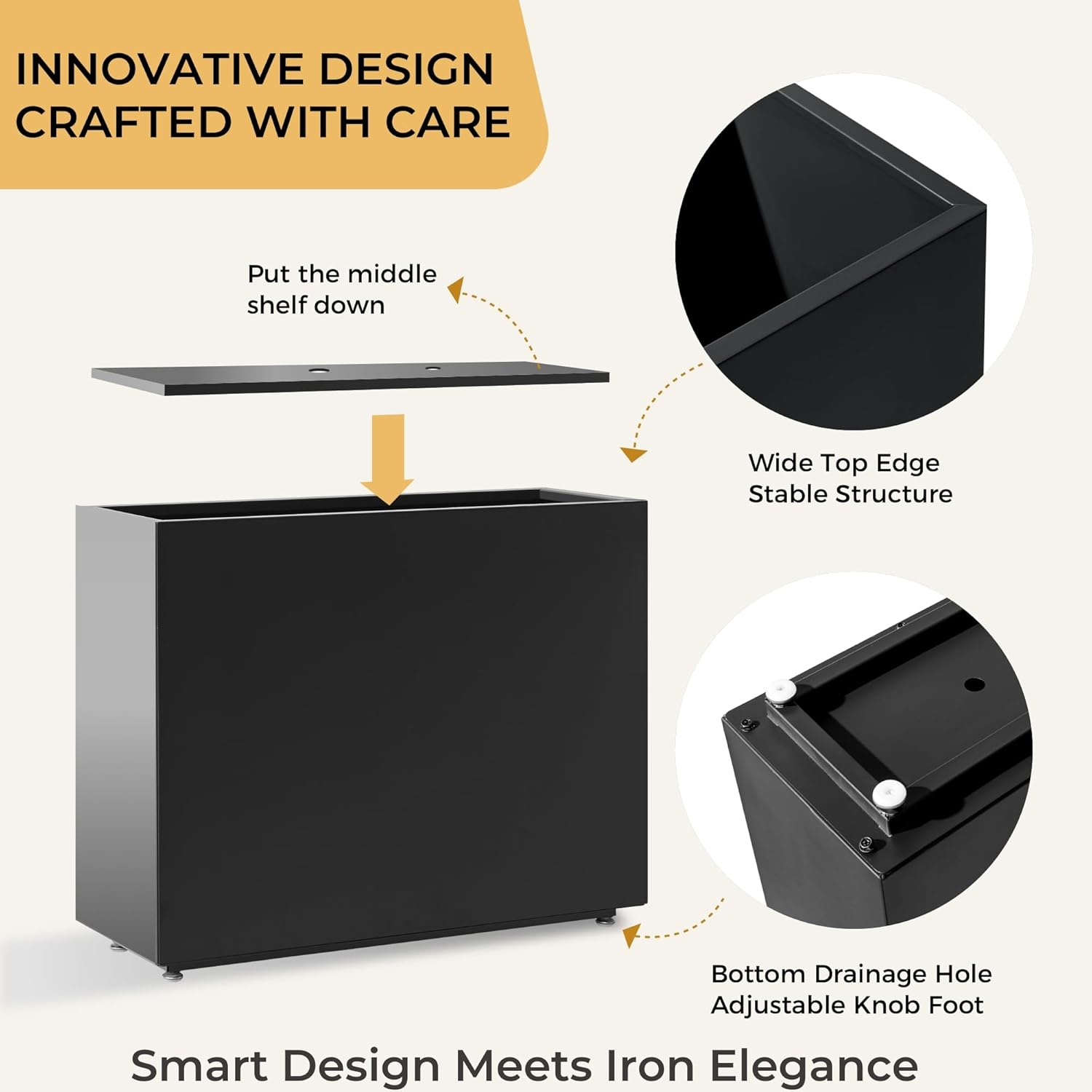 Tall & Long Metal Divider Planter 30W x 11D x 24H, Easy 5-Min Assembly, Outdoor Span Rectangular Planter Box with with Middle Shelf & Adjustable Feet, Versatile for Garden, Yard and Patio, Black