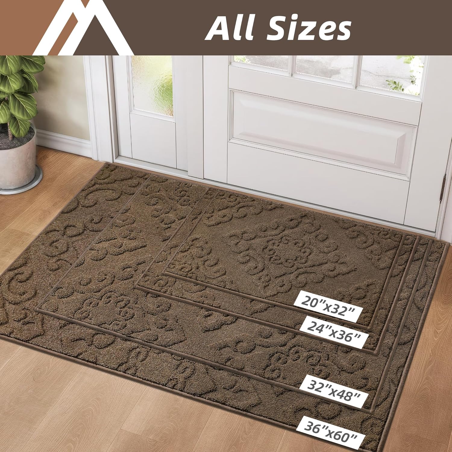 COSY HOMEER-Door-Mat-Non-Slip-Entryway-Rug 24”x36” Absorbent Welcome Mats Washable Dirt Trapper Door Mat Entrance Floor Mats for Front Back Doormats and Wet Shoes,Brown