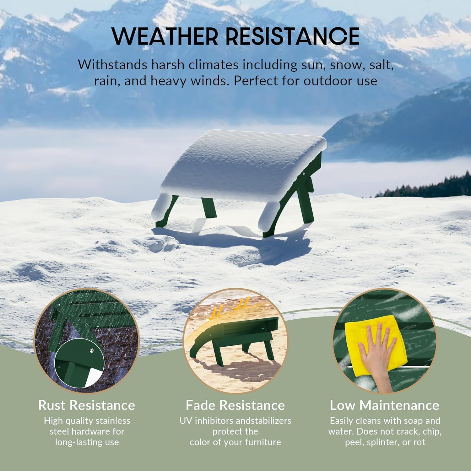 - All Weather Resistant: This Adirondack foot rest are made of HDPE plastic, its weather resistant and UV fade resistant material can withstand in various enviromental pressure and not easy to dent, crack , peel or rot as wood.