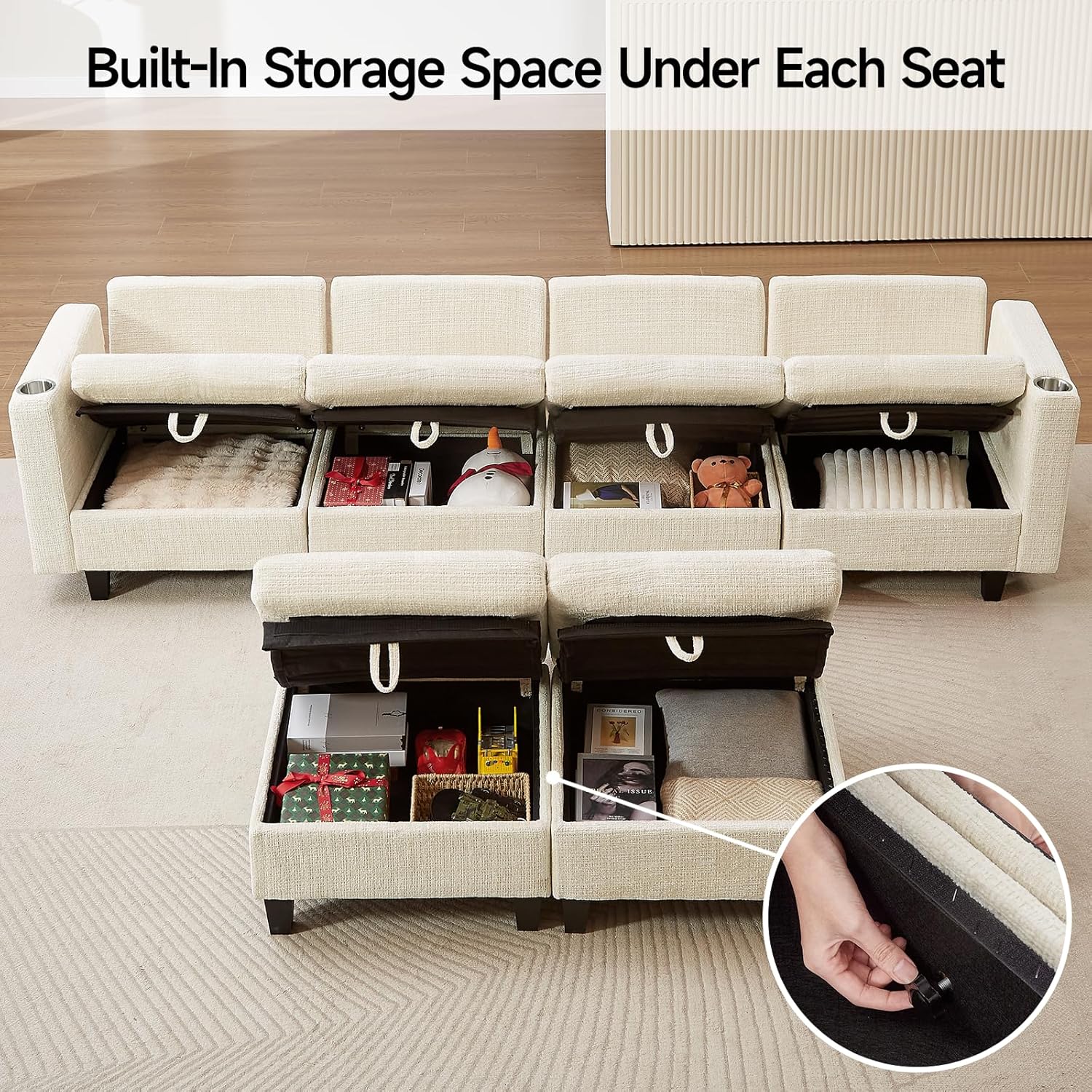 - STORAGE SEAT& CHAISE:Each seat of this sectional sofa includes hidden storage space underneath, making it ideal for storing seasonal blankets, extra throw pillows, children's toys, and various other items you want to organize. This concealed storage helps keep your living room tidy and orderly, enhancing the overall comfort and aesthetic appeal of your home