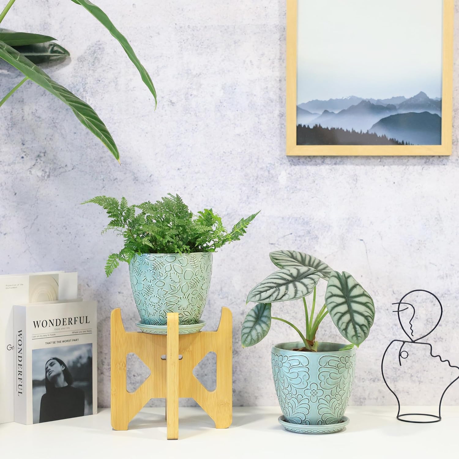 - Plant Pots With Drainage Holes and Mesh Pad: Large drainage holes provide efficient water drainage, while the included leak-proof mesh pads prevent soil from washing away. These features make the pots ideal for succulents, cacti, orchids, and other flowers and green plants. The Retro Light Green Ceramic Planter adds a stylish element, making it perfect for home decoration.