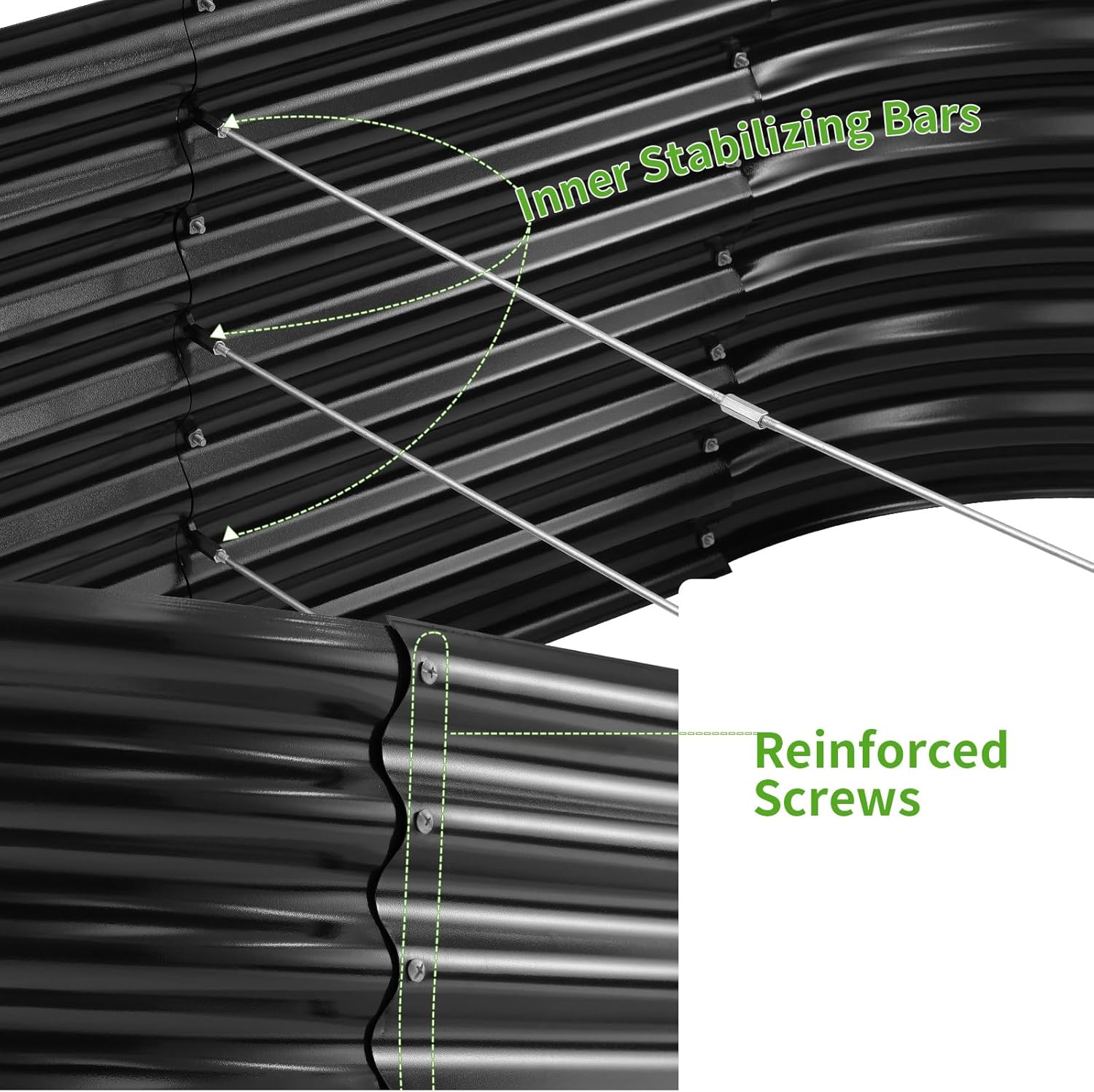 - 【Durable and Long-lasting】The garden boxes outdoor raised are made of 1.0 mm thickened galvanised sheet, durable and not easily deformed. The galvanized steel raised garden bed are coated with a powder coating that won't rust or corrode, even in heavy rain.