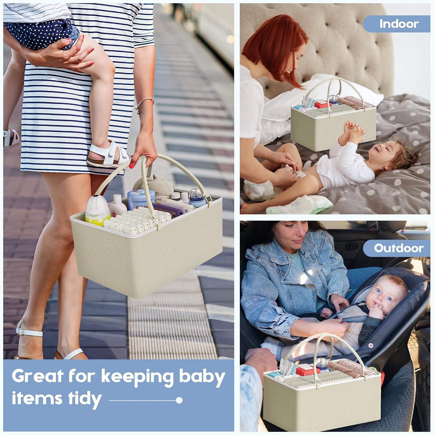 - [2 in 1 Design]Designed for ultimate convenience, this diaper caddy cart features a removable diaper caddy that allows you to take essentials with you wherever you go. Whether you’re in the nursery, living room, or out for a day trip, this diaper cart ensures you’re always prepared. This diaper caddy cart features removable dividers and velcro straps on both tiers, allowing you to create custom compartments tailored to your needs, you can easily adjust the layout to fit your items perfectly.