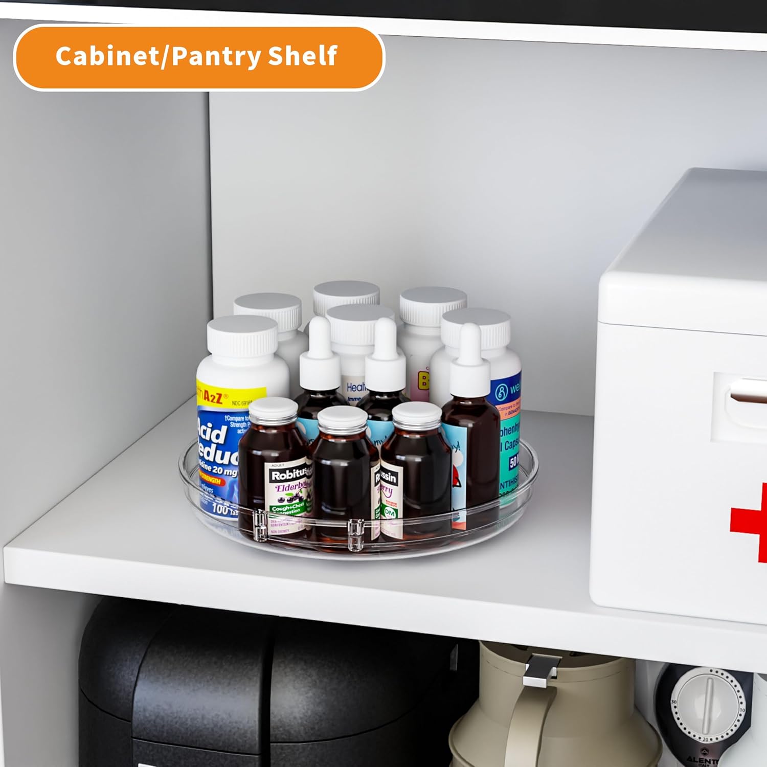 - 【360 spinning turntable organizer】Include 1 Pack 9.5 Inch plastic turntable lazy susans.our lazy susan makes the most out of every inch of your cabinets, serving as a versatile cabinet organizer,Simply rotating the tray lazy Susan organizer to easily access items hidden behind the cabinet and refrigerator