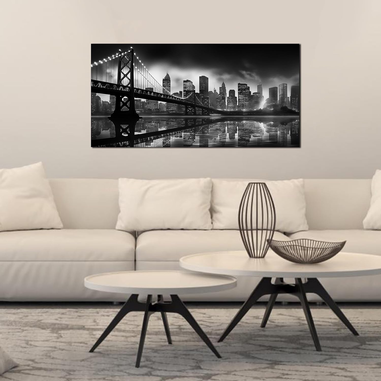 Brooklyn Bridge Wall Art for Living Room City Wall Decor for Bedroom Black Wall Decor for Office 20 x 40 Inch