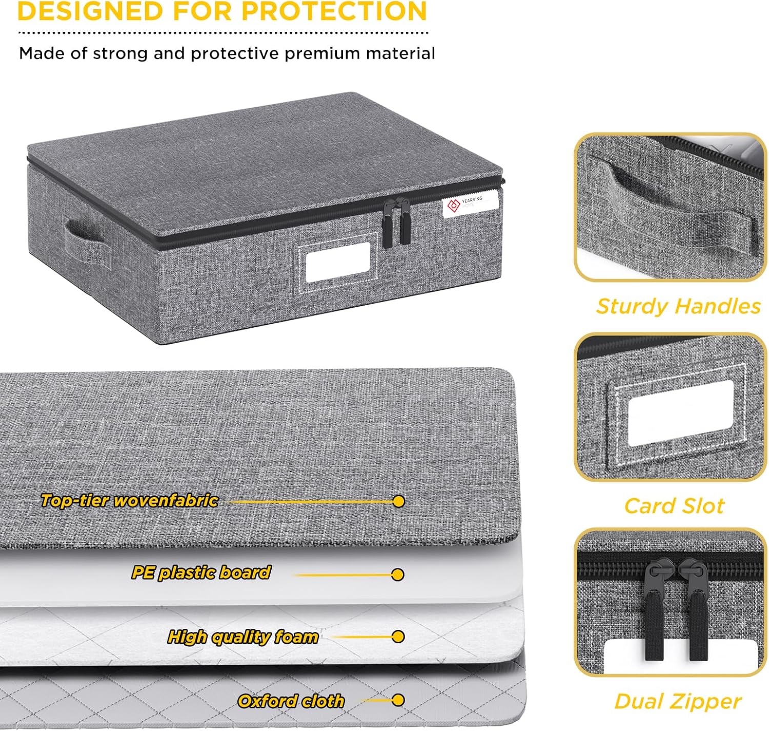 YearningHome Cup and Mug Storage Box with Hard Shell and Dividers for Coffee Mugs,Tea Cups and Glasses,Stackable Storage Organizers with Lid,Handles,Zips and Lable for Moving,Holds 12,2 Pack, Grey