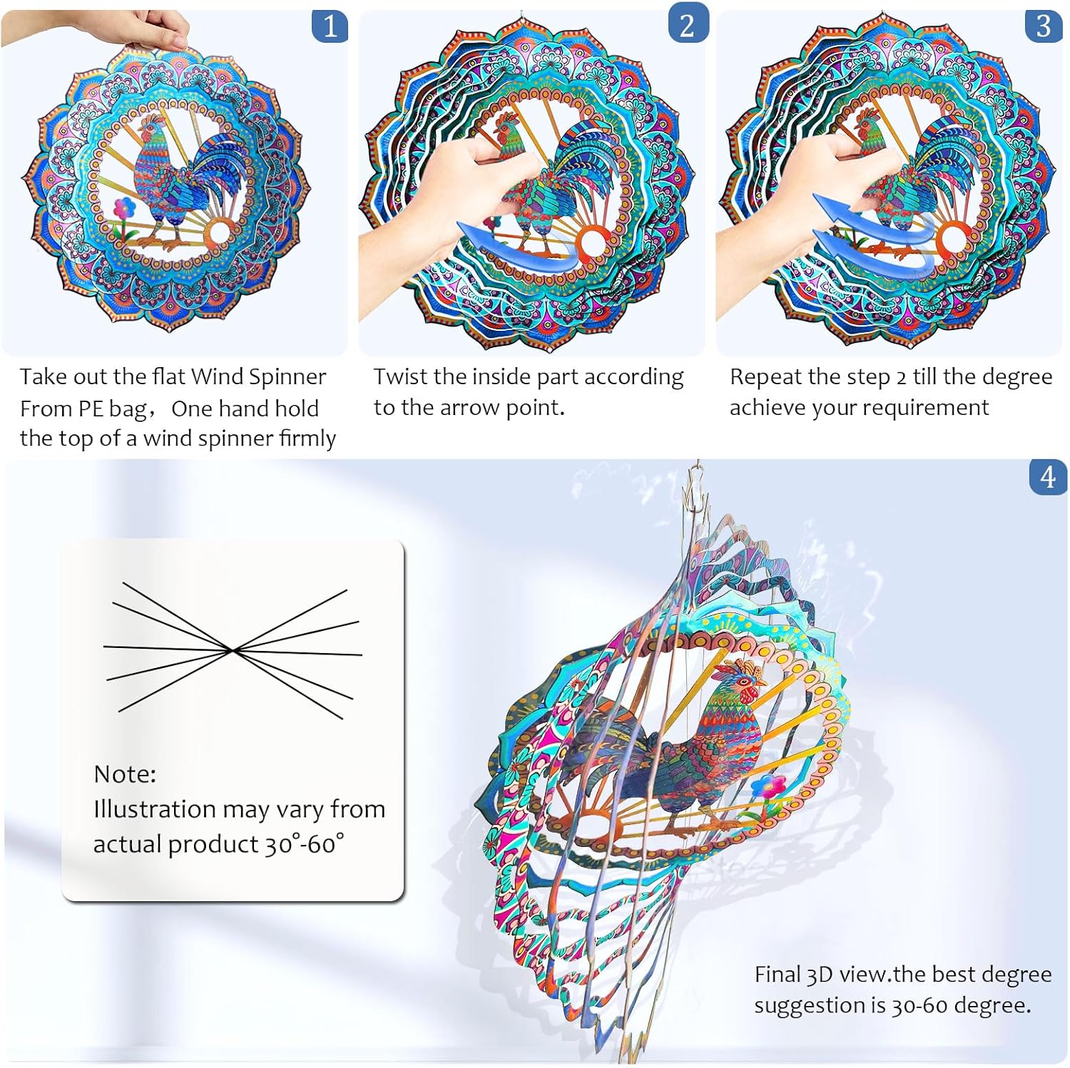 - ★【Easy to Hanging Yard Spinners】Order(wind spinner) Includes a swivel hanging hook so kinetic wind spinners outdoor can twirl in the breeze.Chicken wind spinner outdoor are easy to open to angle you desire and conveniently hang up wherever you like.When used with our power motor,it can bring you the joy of 3D rotation even when there is no wind.