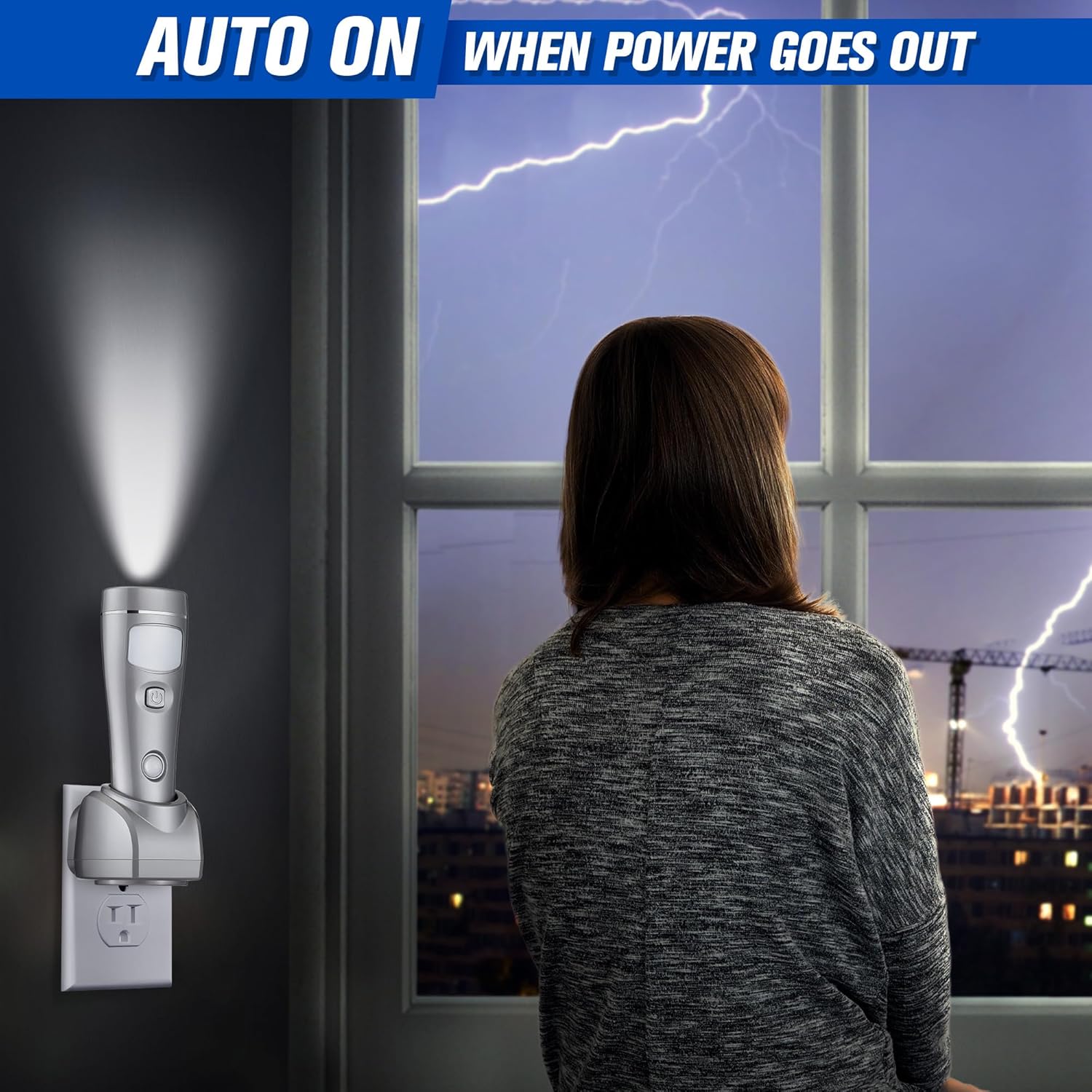 - Safe and Efficient: keep this wall flashlight plugged in for when you need a flashlight with a function that makes it turn on automatically when the power goes out; It can be applied as a home power supply; In order to provide a safe view when most needed; Unplug the flashlight, which can be applied as a power off flashlight; It is suitable for working in dark places; You can easily check the circuit safety and protect yourself