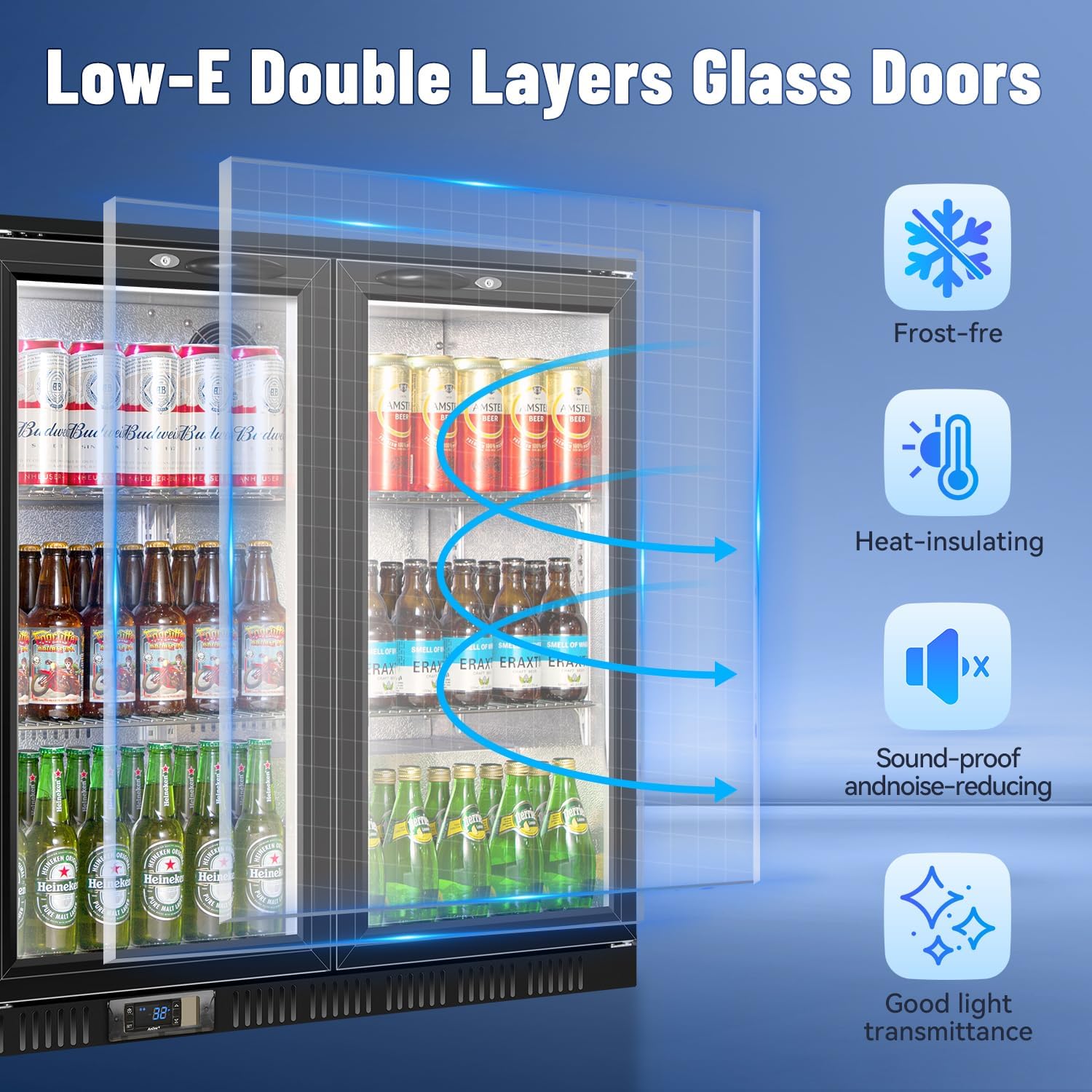 - 【Generous Capacity】With a spacious 312L interior, the dimensions of this display refrigerator are 20.47"D x 53.15"W x 35.43"H, accommodating up to 284 standard 12 oz cans