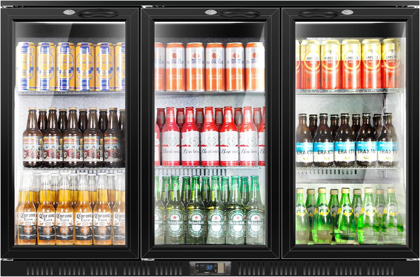 Tylza Back Bar Cooler With 3 Glass Doors, 312L Under Counter Back Bar Refrigerator with LED Lighting, Safety Locks, Counter Height Bar Beverage Cooler for Beer, Soda Drinks, Wine, Black