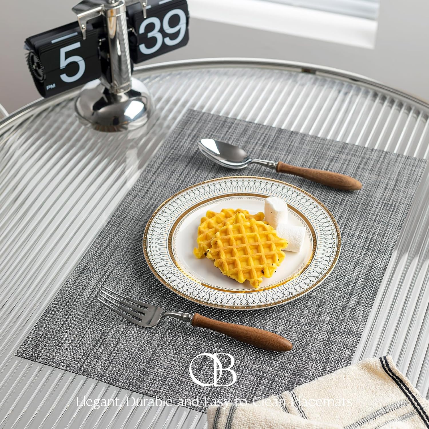 Placemat Set of 4 - Easy Clean Woven Vinyl Placemats for Dining Table, Indoor/Outdoor Place Mats, Washable PVC Table Mats(Dark Gray)
