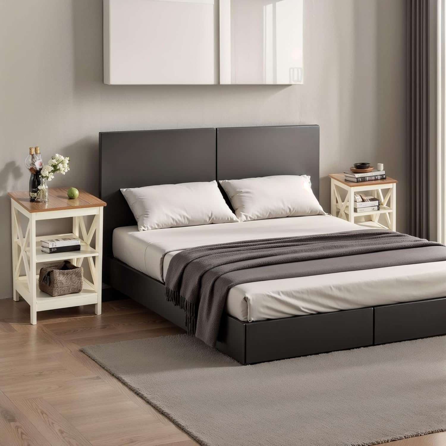 - Durable & Stable Design: Crafted from high-quality MDF, these farmhouse nightstands set of 2 furniture boast a sturdy X-shaped structure for exceptional stability while remaining lightweight. Perfect for use as nightstand/living room side table/couch end tables, they are built to last and withstand the test of time.
