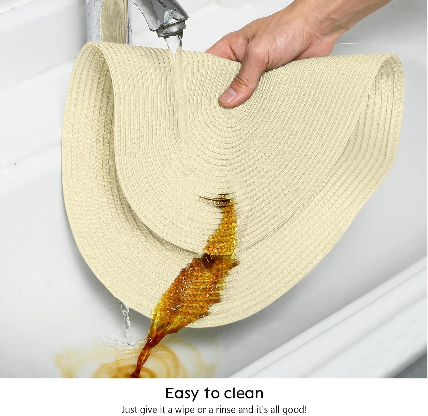 - Material:Crafted from 100% durable polypropylene, these hand-braided mats resist stains and maintain shape through repeated use. Ideal for daily meals or special occasions.