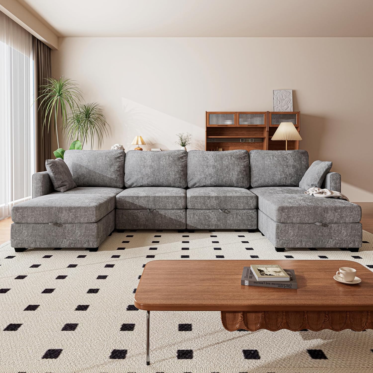 mestyl Modular Sectional Sofa Convertible U Shaped Sofa Couch Set with Storage for Living Room, Modern 4 Seater Modular Sectional Couch with 2 Movable Ottoman (Grey)