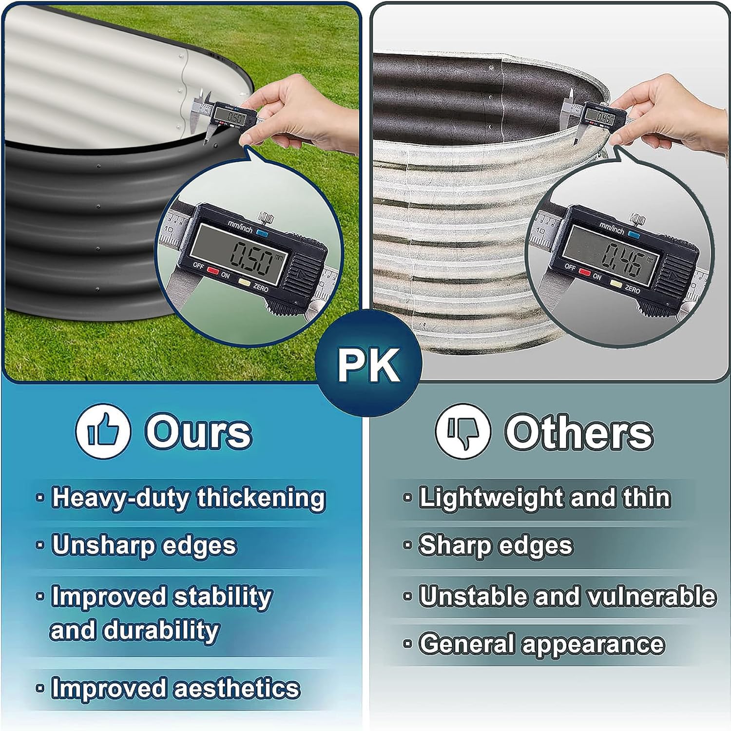 - ๐ณ Unmatched Stability: Crafted with 0.5mm thick overlapping galvanized panels, reaching up to 1.8mm at the seams, our raised garden bed provides excellent strength and stability. The integrated screw fastening edge and unique oval form ensure it remains solid and secure, even when fully planted.