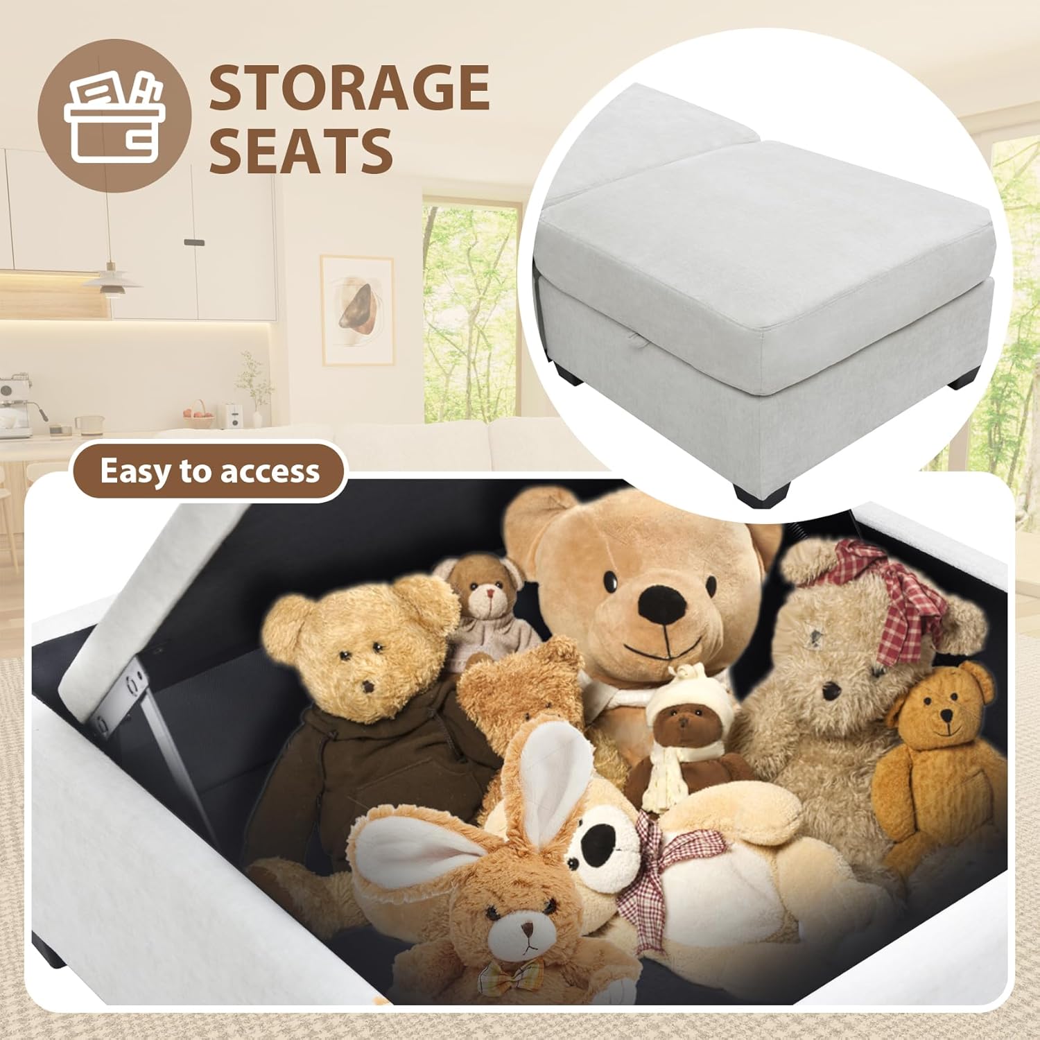 mestyl Modular Sectional Sofa Convertible L Shaped Sofa Couch Set with Storage for Living Room, Modern 3 Seater Modular Sectional Couch with Movable Ottoman (Beige)
